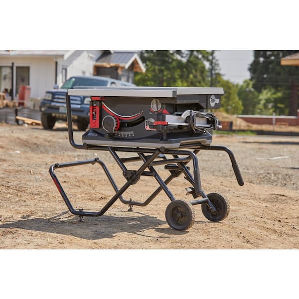 The 1.5 HP 15 Amp SawStop Jobsite Saw Pro is the standard in jobsite safety. Equipped with SawStop's patented blade braking technology this saw delivers unmatched protection coupled with groundbreaking functionality. With the 1 Turn Elevation and Quick tilt features users can raise and lower the blade with just 1 turn of the handwheel and quickly tilt the blade for bevel cuts saving valuable time. The solid T-Style Fence with Ergolock allows the fence to slide smoothly along the rails and locks in tight for accurate cuts. Simple intuitive action extends the Mobile Cart for use and collapse the cart for transport and storage. This saw includes 1 standard brake cartridge 1 40-tooth blade 1 zero clearance insert a collapsible rolling cart active dust collection blade guard and riving knife. Experience the precision quality and safety of a SawStop saw wherever the job takes you.