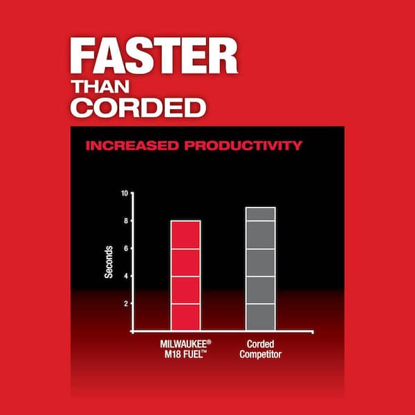 The M18 FUEL 1-1/2 in. Magnetic Drill drills faster than the number one corded competitor delivers the strongest magnetic hold on 1/4 in. steel providing a safer drilling environment in this material and drills over seventy-five 13/16 in. holes per charge. The M18 FUEL 1-1/2 in. Magnetic Drill delivers safer drilling on 1/4 in. steel by providing the industry's strongest holding force on this material. By utilizing permanent magnets the magnetic base operates without electricity ensuring that the magnet does not deactivate if the battery is drained. Equipped with Auto-Stop lift-off detection power to the motor is automatically cut if excess rotational motion is detected while drilling. Powered by a Milwaukee POWERSTATE Brushless Motor both drills are faster than their corded counterparts and deliver the same 1-1/2 in. annular cutter capacity. REDLINK PLIntelligence is the most advanced Electronic system on the market preventing damage to the tool and battery caused by overloading or overheating. The M18 REDLITHIUM 8.0 Battery Pack delivers up to 5X more run time 35% more power and runs 60% cooler than standard 18-Volt lithium-ion batteries. It maintains full power and runs substantially cooler through heavy applications allowing users to push their cordless tools harder and longer than ever before.