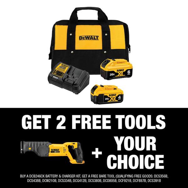 • 20V MAX Cordless Reciprocating Saw. (1) 20V 6.0Ah and (1) 20V 4.0Ah Batteries. and Charger