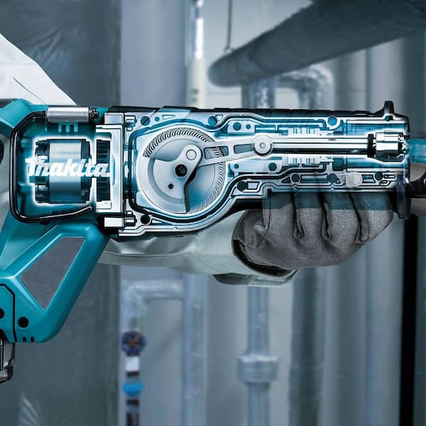 The 40V Max XGT Recipro Saw (GRJ01Z tool only) delivers faster cutting speed for cutting and demolition applications. Makita-built variable 2-speed brushless motor delivers 0-2300 (low) and 0-3000 (high) strokes per minute. XGT technology delivers up to 145 cuts per charge in 2x10 SPF lumber using one XGT 4.0 Ah Battery (sold separately). The XRJ04T is equipped with efficiency features for faster cutting. The long 1-1/4 in. stroke length increases cutting efficiency and the refined crank mechanism design minimizes blade deflection and reduces vibration. Convenience features include a large 2-finger variable speed trigger electric brake built-in L.E.D. light and a tool-less blade change for faster blade installation and removal. Ergonomically designed handle for difficult cutting applications such as overhead. XGT is a system of equipment tools batteries and chargers utilizing 40V Max lithium-ion batteries. XGT is engineered to deliver high power to take on high-demand applications allowing users to completely transition to a cordless job site. XGT is equipped with advanced brushless motor engineering intelligent digital communication and superior durability features to outpower outsmart and outlast the competition.