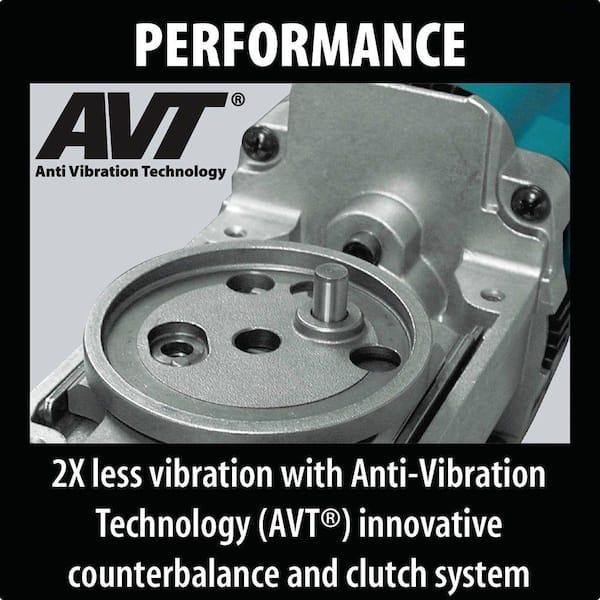 Makita's Reciprocating Saw with AVT (model JR3070CTZ) delivers superior power and performance with less vibration. The JR3070CTZ is equipped with Anti-Vibration Technology (AVT) an internal counterbalance system engineered inside the tool that significantly reduces vibration. The result is faster more efficient cutting and less vibration in the tool. The JR3070CTZ with AVT is powered by a 15 Amp motor with electronic speed control to maintain constant speed under load. The JR3070CTZ has a long 1-1/4 in. stroke for faster cutting with 0-2800 strokes per minute (SPM) and a variable speed dial with 6 different preset speeds to match the speed of the saw to the application. The unique clutch system extends the tool life by protecting the gears should the blade bind. It also has orbital action with 4 settings to choose from for high speed cutting. The JR3070CTZ has a durable body design that keeps dust and debris away from the motor with rubber and felt seals to keep dust and water out for a longer tool life. The JR3070CTZ weighs only 10 lbs. with tool-less blade change and 5-position shoe adjustment. The JR3070CTZ is a versatile and powerful reciprocating saw engineered for demolition metal cutting wood cutting drywall and plaster plastics and remodeling. It's ideal for builders roofers metal fabricators remodelers and general contractors seeking a best-in-class industrial quality reciprocating saw.