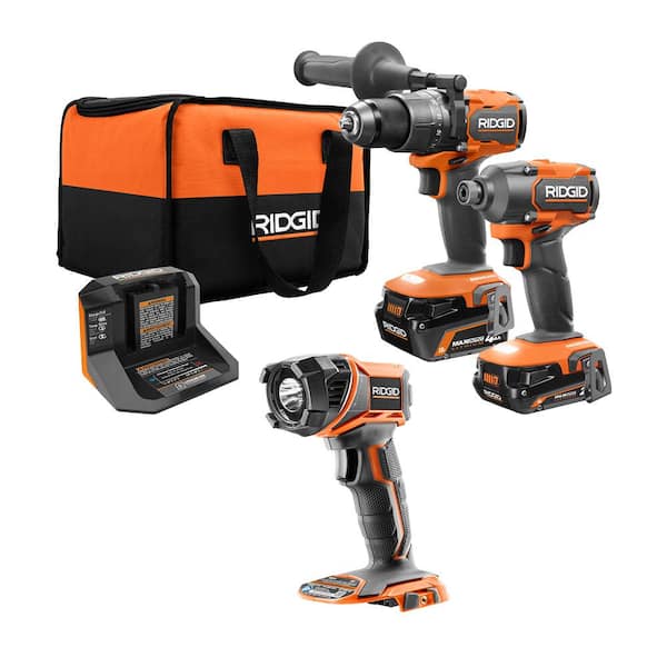 RIDGID introduces the 18V Brushless Cordless 3-Tool Combo Kit with Hammer Drill Impact Driver LED Work Light (2) Batteries Charger and Bag. The RIDGID 18V Brushless 1/2 in. Hammer Drill delivers up to 800 in./lbs. of torque for maximum power. With a 2-speed gearbox and max RPM of 2100 this 18V brushless hammer drill can handle the complete range of drilling application like drilling and driving into wood and metal as well as drilling into masonry. The RIDGID 18V Brushless 3-Speed 1/4 in. Impact Driver delivers 20% faster driving compared to the previous model (R86039). The powerful motor in this 18V brushless 3-speed impact driver delivers up to 2300 in./lbs. of torque to easily drive deck screws or fasten lag bolts. This Cordless LED Work Light provides up to 340 Lumens using a clear white LED. As always this RIDGID 18V Brushless 2-Tool Combo Kit is 100% compatible with all RIDGID 18V batteries. Best of all this combo kit is backed by the Industry¡¯s Only Lifetime Service Agreement simply register within 90 days of purchase for FREE Parts Free Service For LIFE. The R9208 includes the 18V Brushless 1/2 in. Hammer Drill/Driver 18V Brushless 3-Speed 1/4 in. Impact Driver 2.0 Ah MAX Output Battery 4.0 Ah MAX Output Battery Charger Tool Bag an 18V Cordless LED Torch Light and Operator¡¯s Manual.