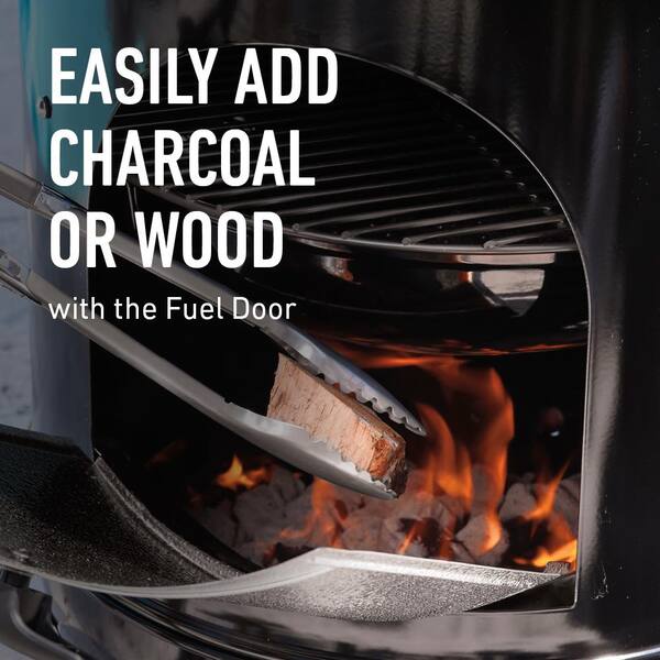 Smokey Mountain large aluminum fuel door allows grill masters to easily add charcoal