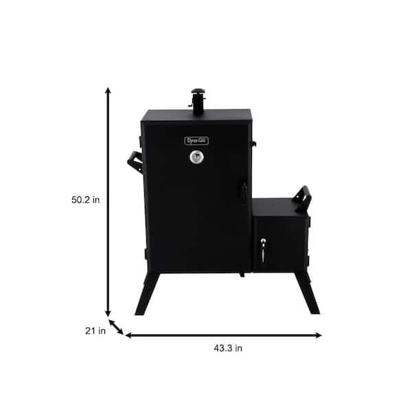The Wide Body Vertical Offset Charcoal Smoker from Dyna-Glo brings versatility performance and quality to your outdoor cooking experience. With 6 height-adjustable cooking grates this smoker can accommodate a variety of sizes and types of food. This smoker can hold up to 150 lbs. of food at a time across its ample 1890 sq. in. of cooking space. Ideal for capturing maximum smoke flavor the design minimizes heat loss with its pre-installed door seal. The offset functionality of this smoker is designed to keep direct heat away from the food which helps to prevent food on the bottom racks from cooking too fast. The porcelain-enameled charcoal chamber lets you keep briquettes stacked tightly for improved burn efficiency and the removable steel ash pan handles large amounts of ash for hours of maintenance-free cooking. The steel smoke stack with adjustable flue provides greater cooking precision allowing you to fine-tune the perfect cooking temperature. With a stainless temperature gauge that features a smoke zone indicator you can achieve the ideal heat level for infusing a smoky flavor into your meals every time.