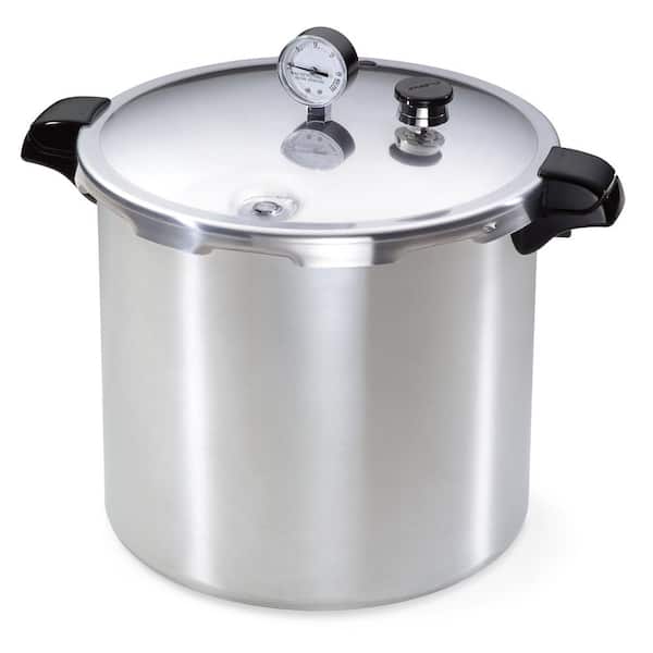 This Presto 23-quart pressure canner is designed for easy confident home pressure canning. The only safe method recommended by the A for canning vegetables meats poultry and seafood. Doubles as a boiling water canner for preserving fruits jams jellies pickles and salsa in half-pint pint and quart jars. Pressure dial gauge registers a complete range of processing pressures for precise canning. Works on gas electric smooth-top AND induction ranges.