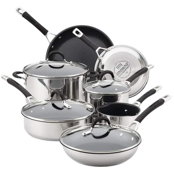SET INCLUDES: 1-Quart Pouring Saucepan 2-Quart Saucepan with Lid 3-Quart Saute Pan with Lid 6-Quart Stockpot with Lid 10-Inch Frying Pan with Lid 8-Inch and 11.5-Inch Frying Pans