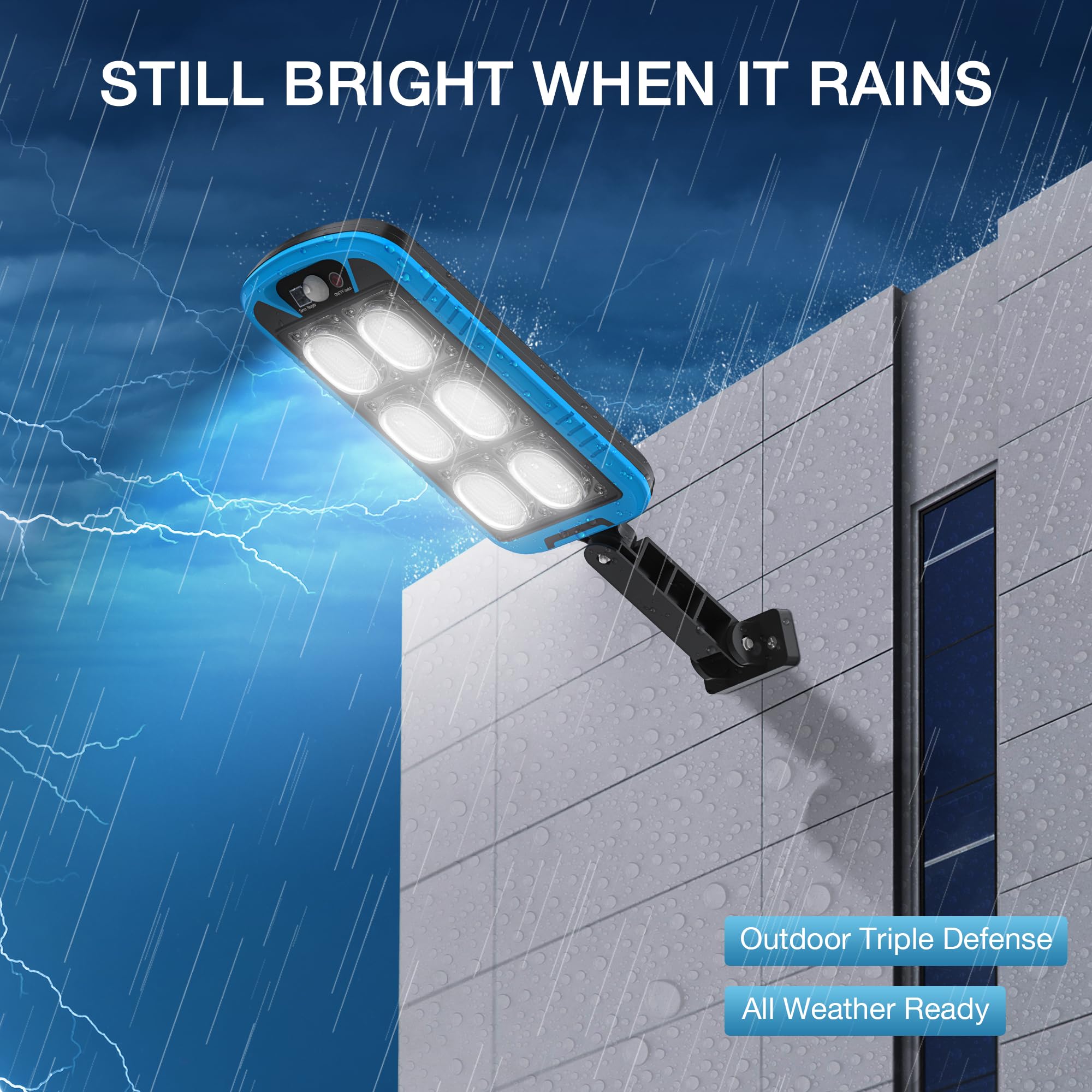 - [Powerful Capacity Battery]: This solar lights outdoor is equipped with 150pcs super brighter LED beads; the super output power exceeds other solar lights, the brightness of this light reaches 20000LM, with 6-8 hours of direct sunlight charging during the day, this solar powered street light can operate for 10~12 hours make your way home safe.