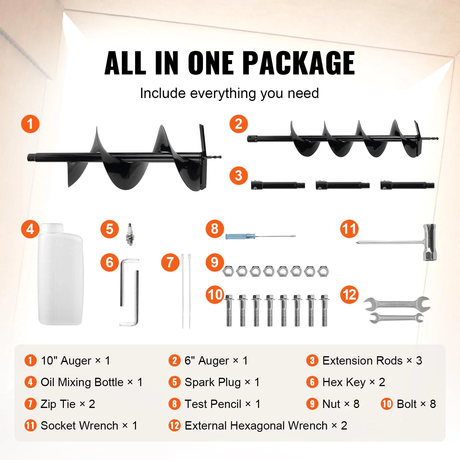 • Complete Accessories: We ship the main unit and accessories together. It includes 3 extension poles. 2 drill bits. a spark plug. an oil can. and a tool kit. The product is EPA-certified for environmental protection. ensuring its safety and eco-friendliness.