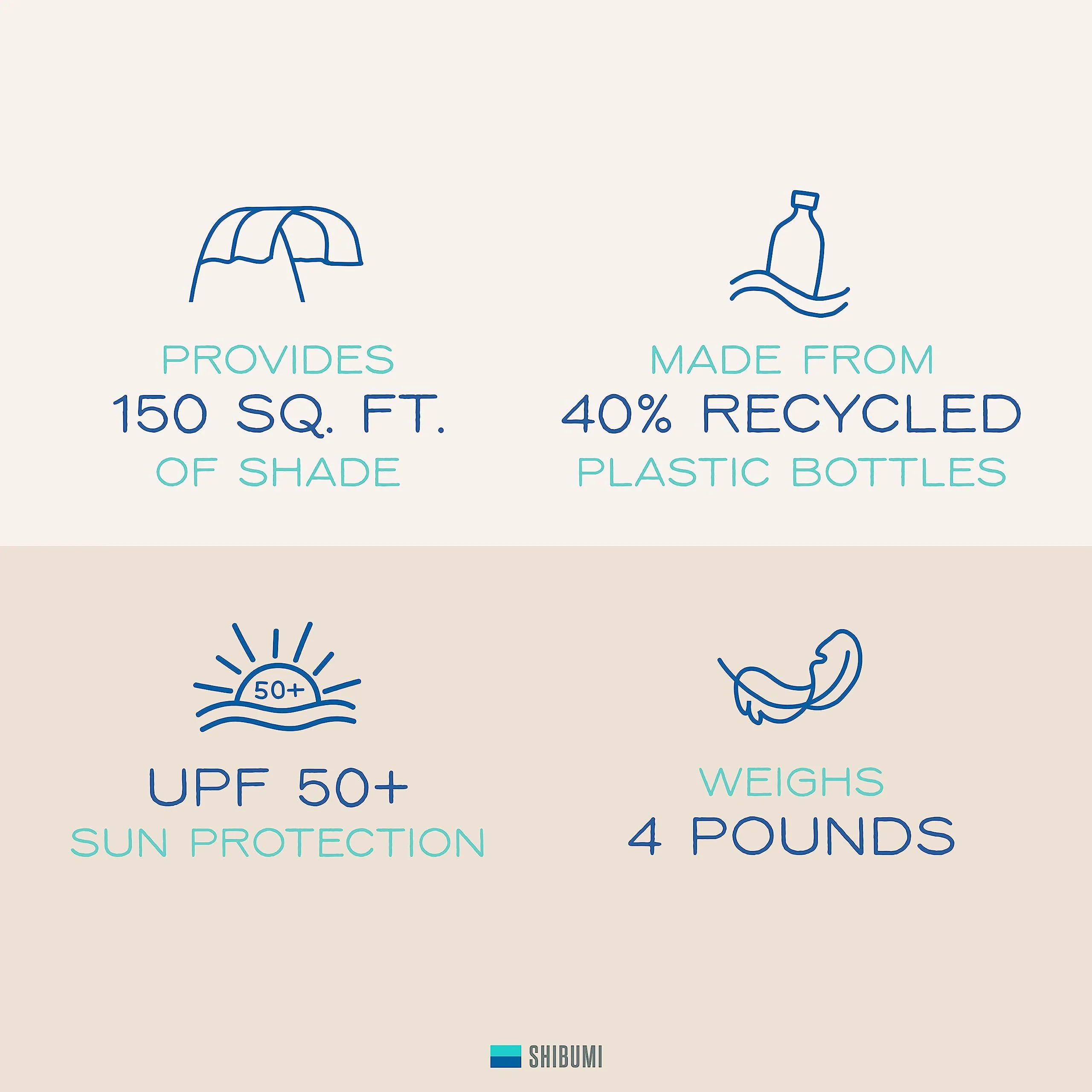 - MADE FROM RECYCLED PLASTIC: We believe in leaving the beach better than we found it. That's why the Shibumi Shade canopy is made from 40% ocean-bound recycled plastic bottles. It's better for you and better for the beach.