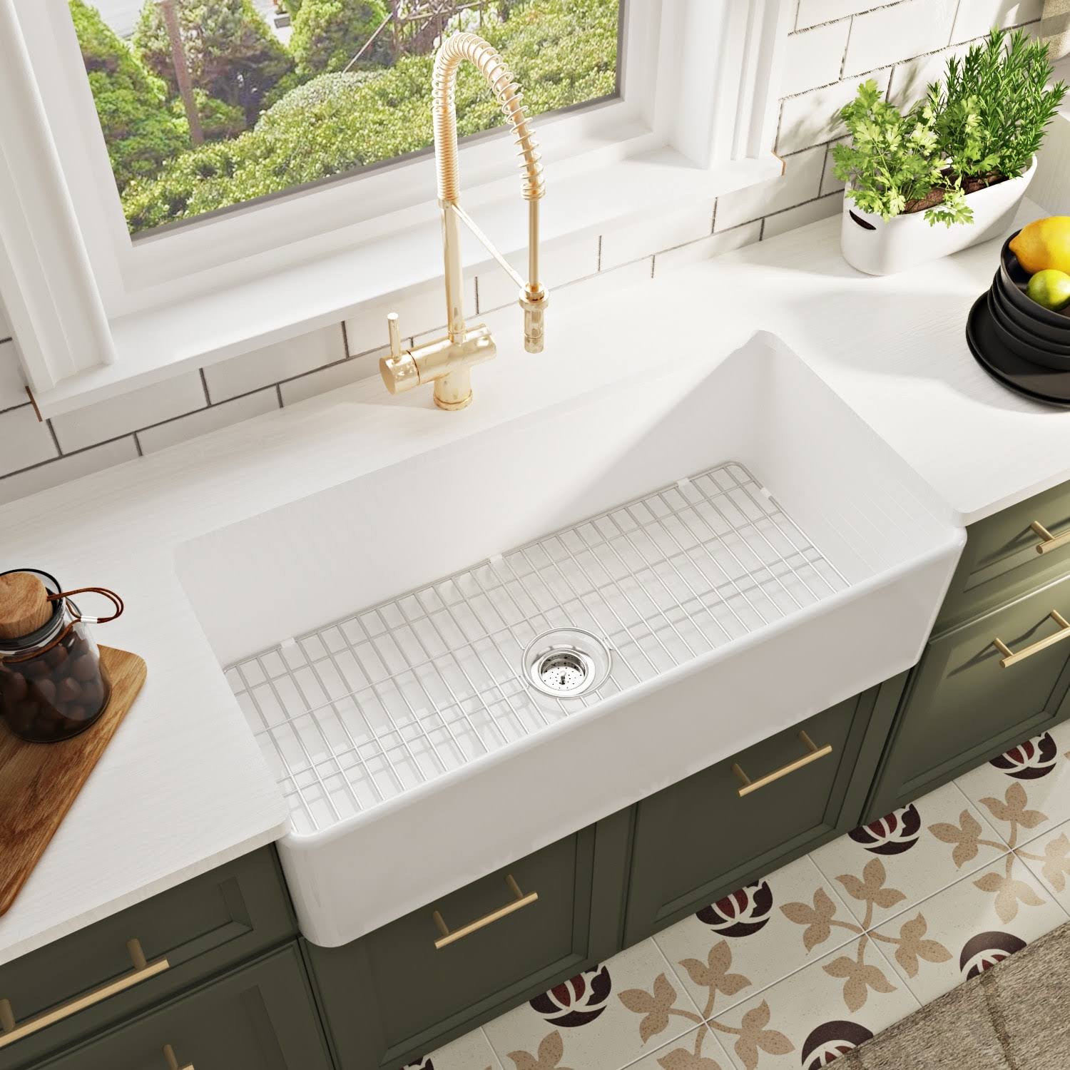 DeerValley DV-1K505 Grove 36" L x 18" W Fireclay Farmhouse Kitchen Sink with Sink Grid and Basket Strainer Finish: White