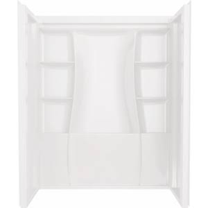 Woodbridge Krasik 60 in. L x 36 in. W Alcove Solid Surface Shower Pan Base with Right Drain in White with Chrome Cover, White with Chrome Drain Cover