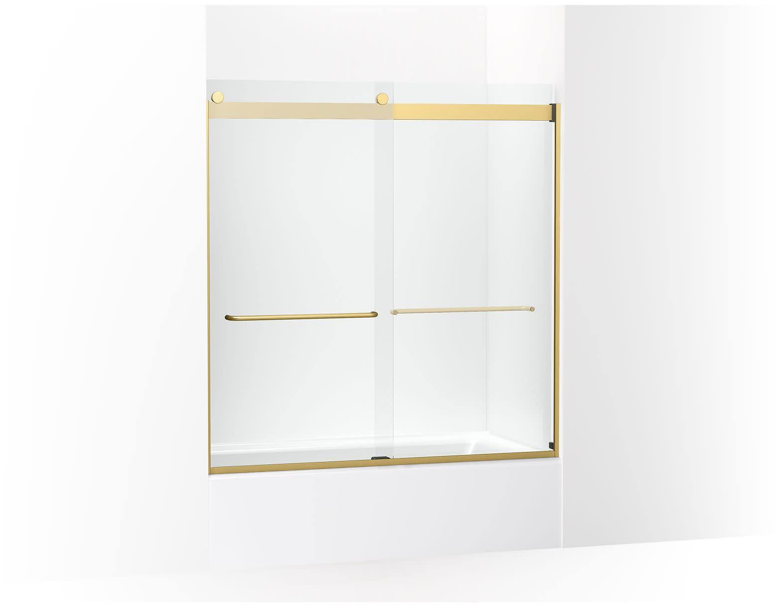 Kohler K-706004-L Levity Sliding Bath Door, 62" H x 56-5/8 - 59-5/8" W, with 1/4" Thick Crystal Clear Glass - Vibrant Brushed Moderne Brass