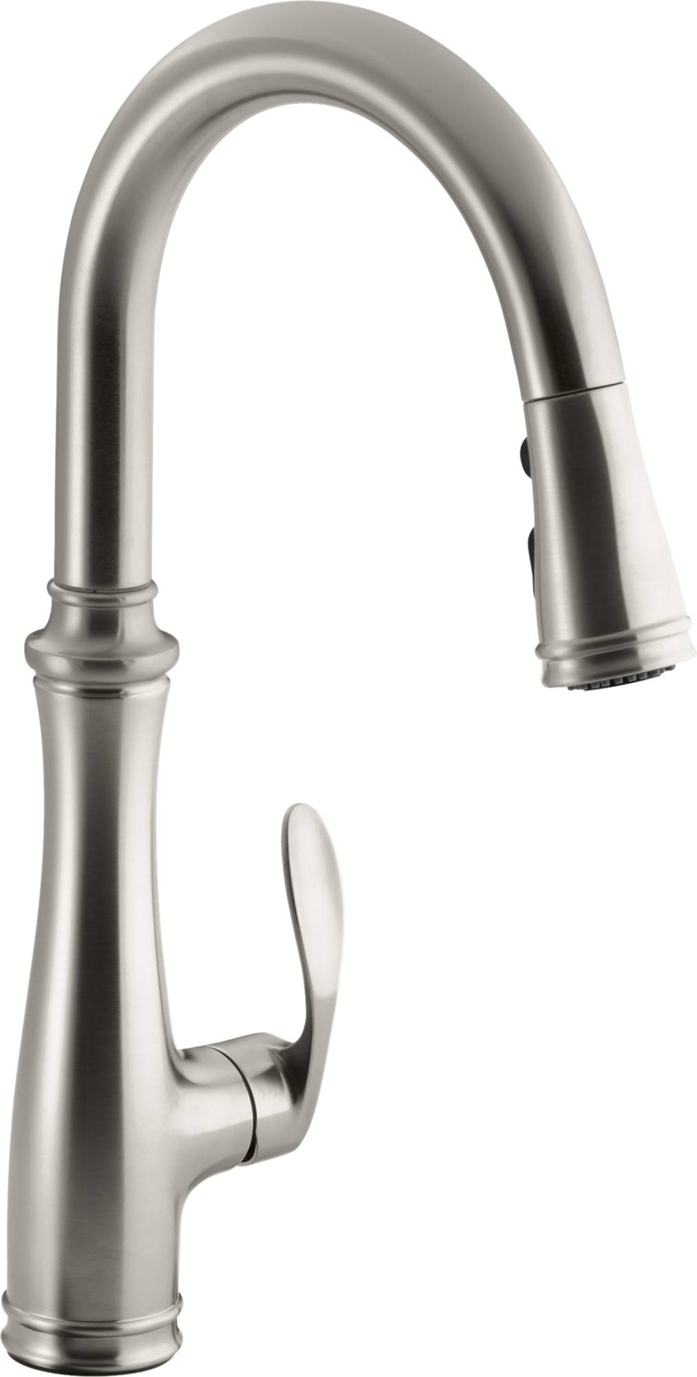 KOHLER K-560-VS Bellera Single-Hole or Three-Hole Kitchen Sink Faucet with Pull-Down 16-3/4" Spout and Right-Hand Lever Handle, DockNetik Magnetic Docking System, and A 3-Function Sprayhead Featuring Sweep Spray - Vibrant Stainless