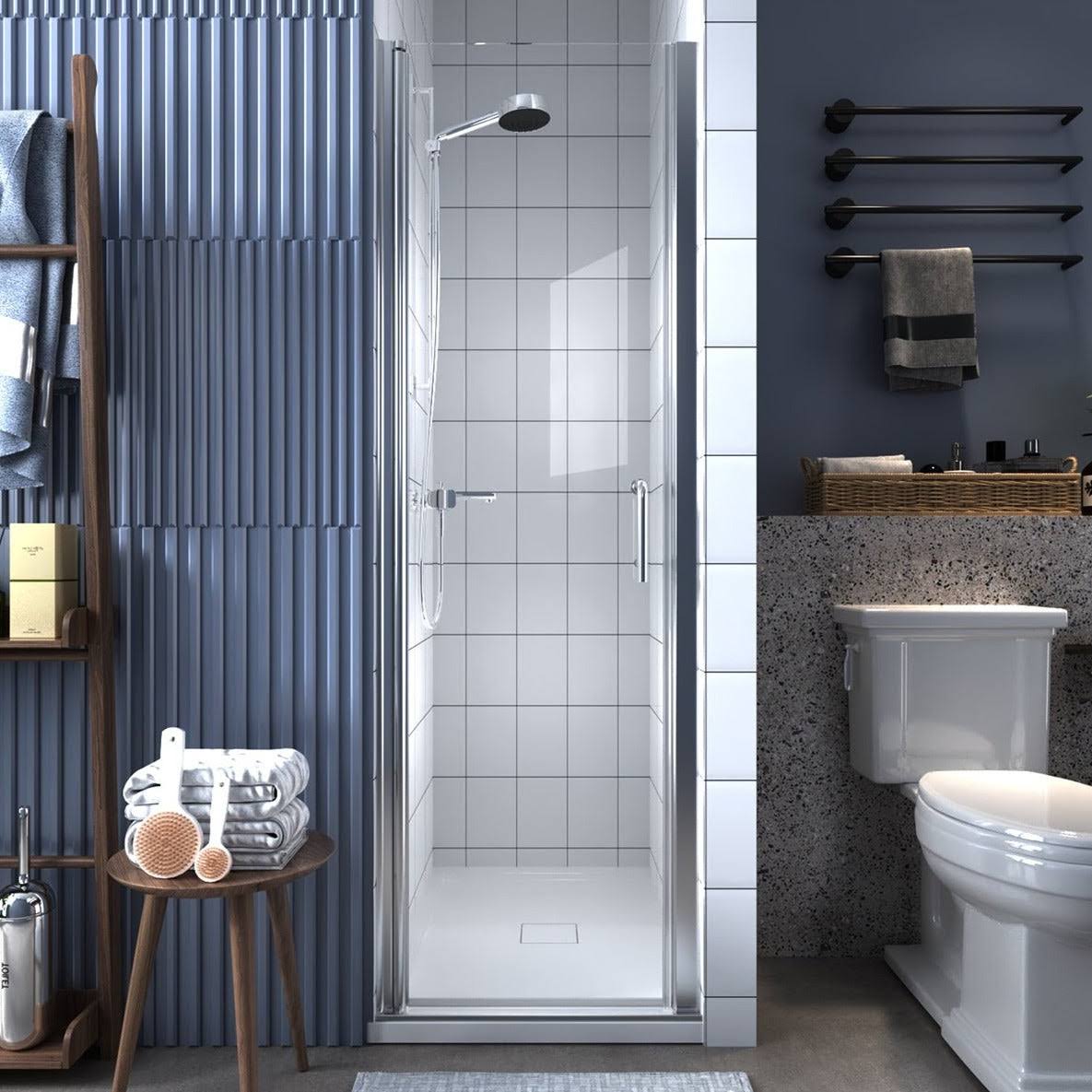 ExBrite 24-25.5 in. W x 72 in. H Small Shower Door Hinged Pivot Chrome Install Clear Glass Shower Door