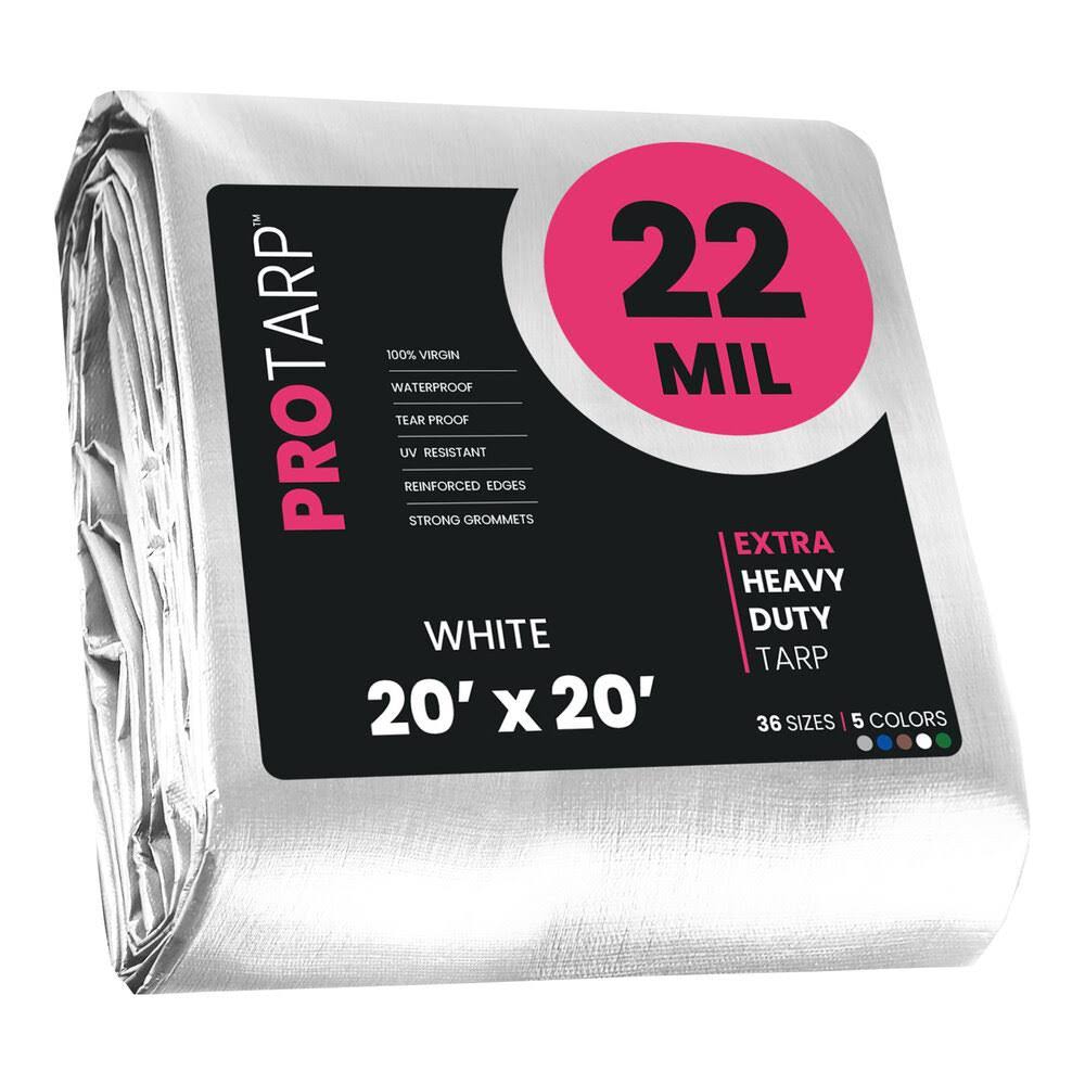 PROTARP 20 ft. x 20 ft. White 22 Mil Heavy Duty Polyethylene Tarp, Waterproof, UV Resistant, Rip and Tear Proof