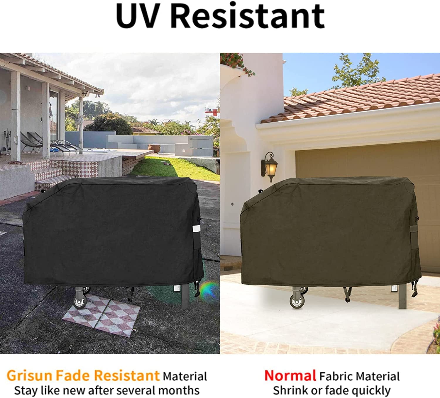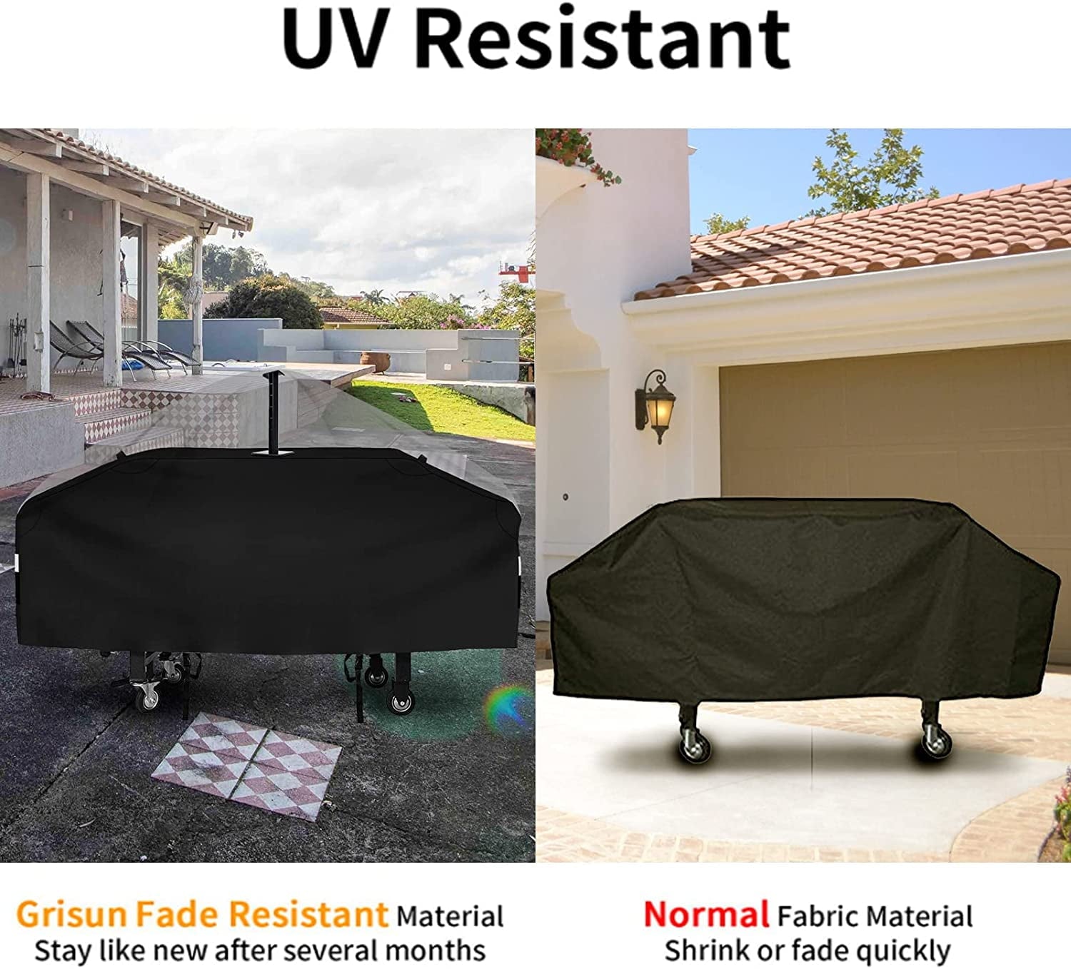 - [600D Fabric] - This cover is made of 600D cloth: waterproof function soft to the touch and very durable without fading. The larger the number in front of the D the thicker the fiber. Aim to protect your grill from heavy rain hot sun dust high winds and all the elements.