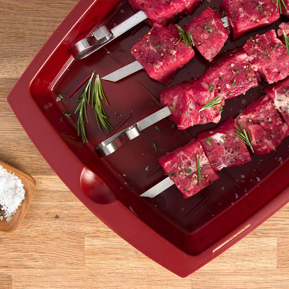 - One tray marked raw and one tray marked cooked lessens risk of cross-contamination