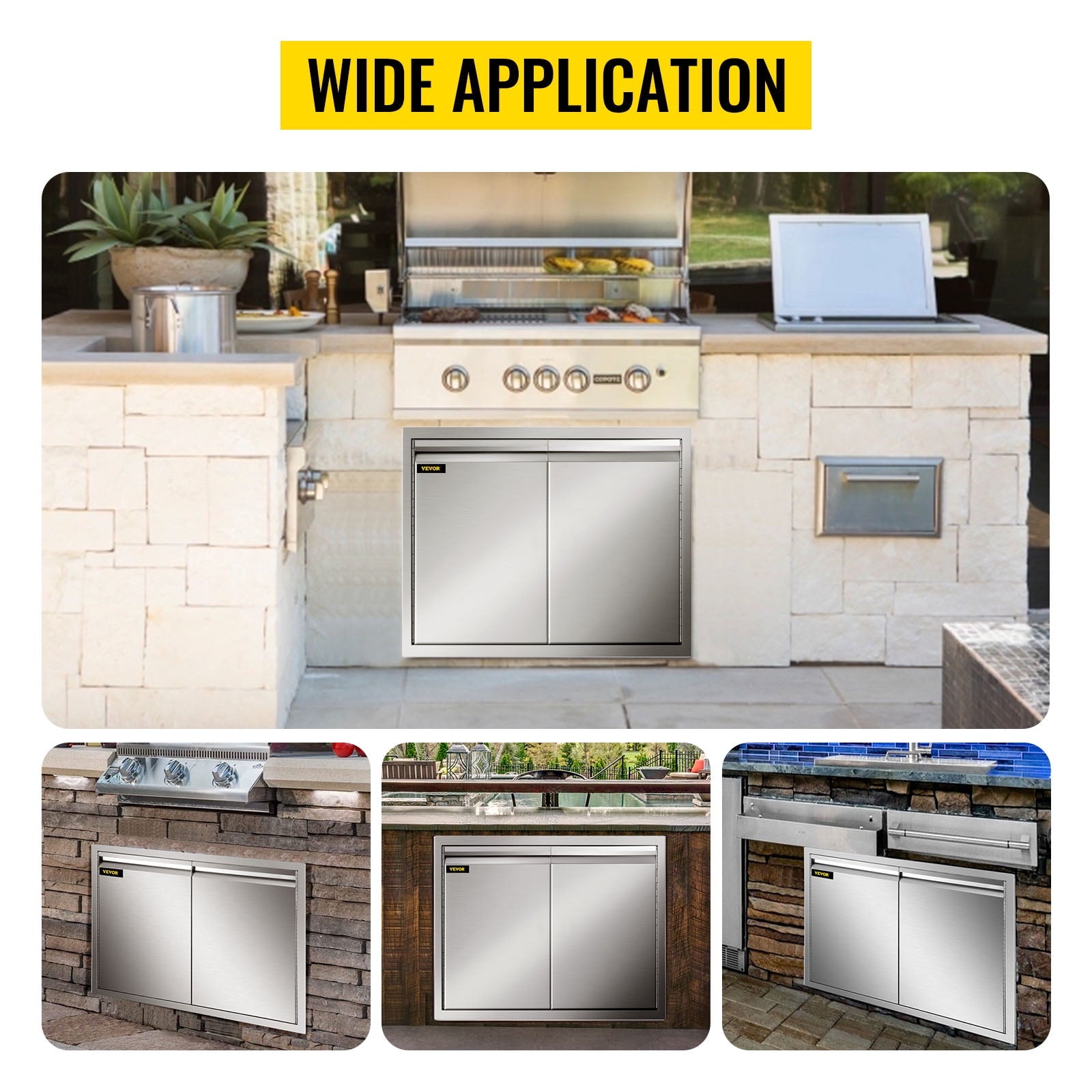 - Wide Application:As great access doors for indoor and outdoor the stainless steel BBQ doors are ideal for the outdoor kitchen BBQ island kitchen sink fireplace etc. They can bear all kinds of weather no matter rain or shine.