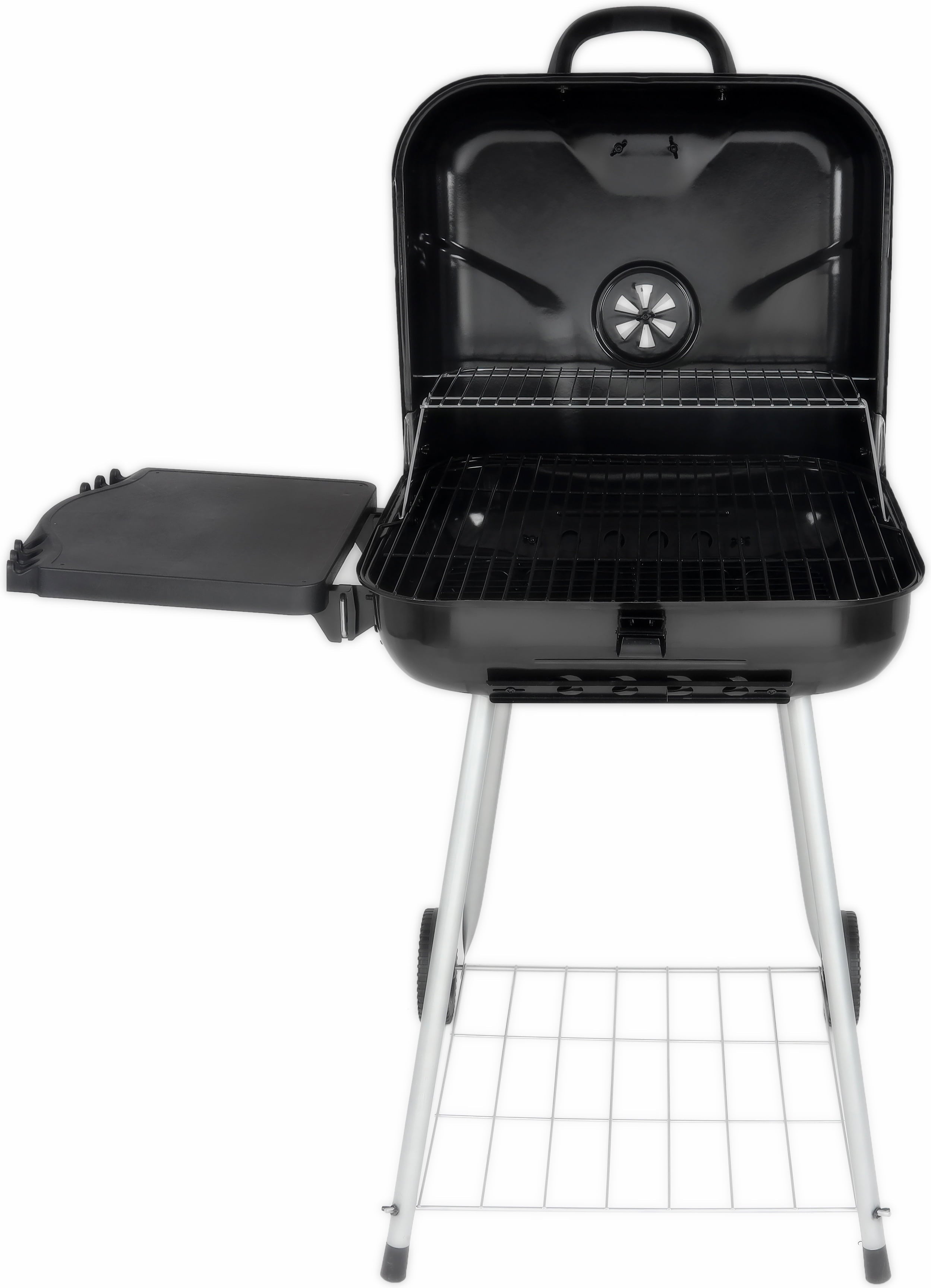 22 Square Charcoal Grill with Foldable Side Shelf & Wheels in Black