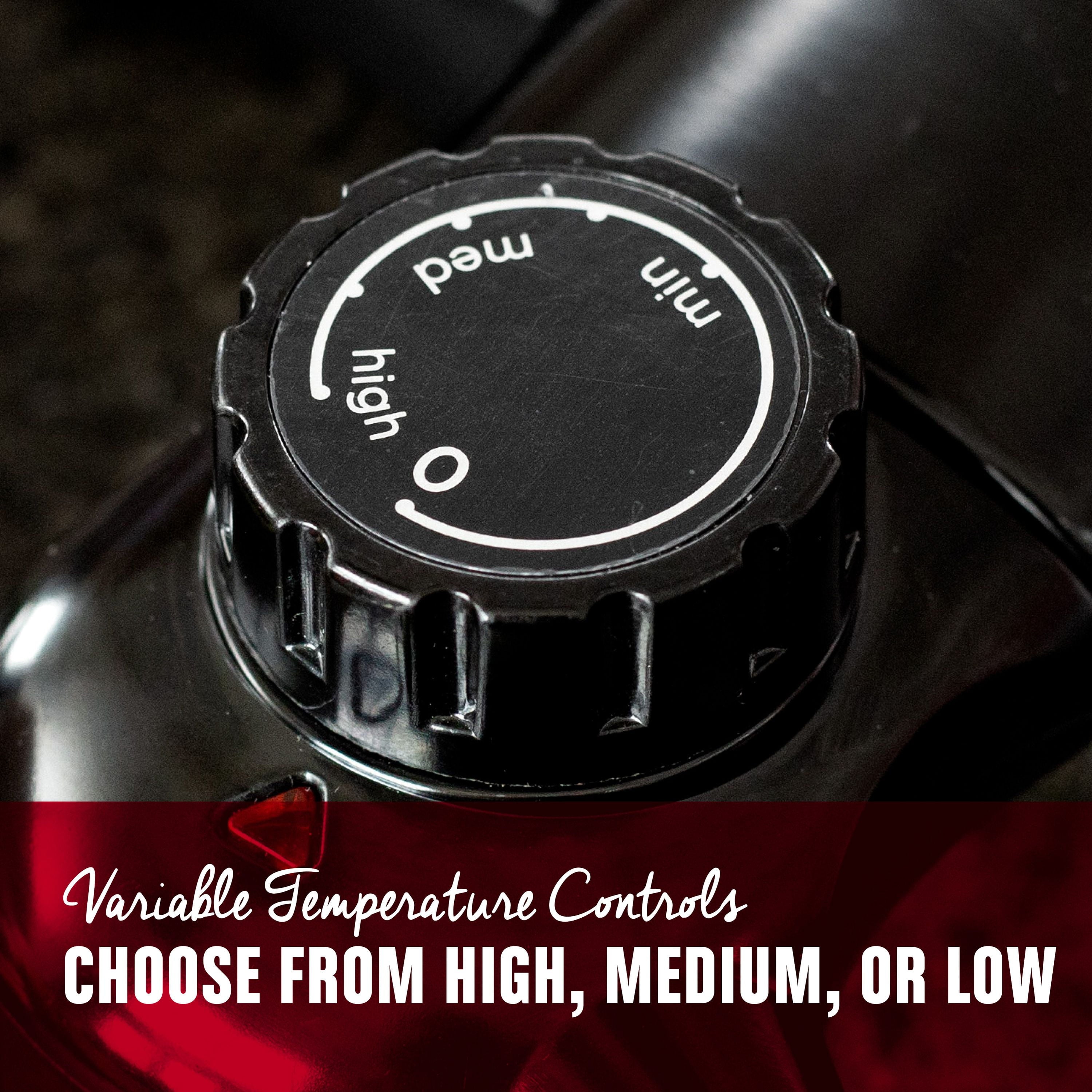 • Variable Temperature Controls - Set the dial at High Medium or Low for precise cooking and delicious results on a variety of grilled favorites. The temperature probe is removable for easy cleanup and storage.