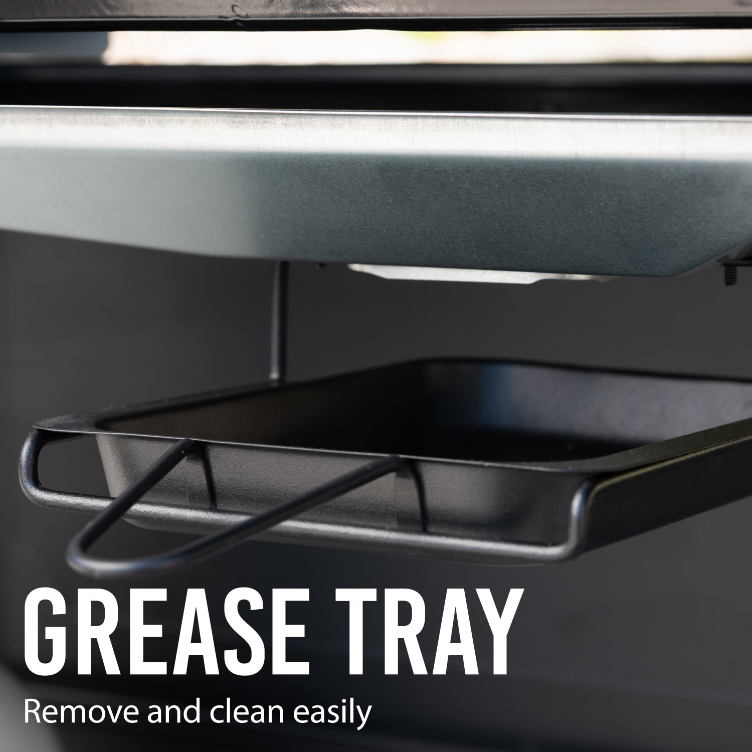 • A removable grease tray allows drippings to be funneled away from the burners and reduces your risk of flare-ups.