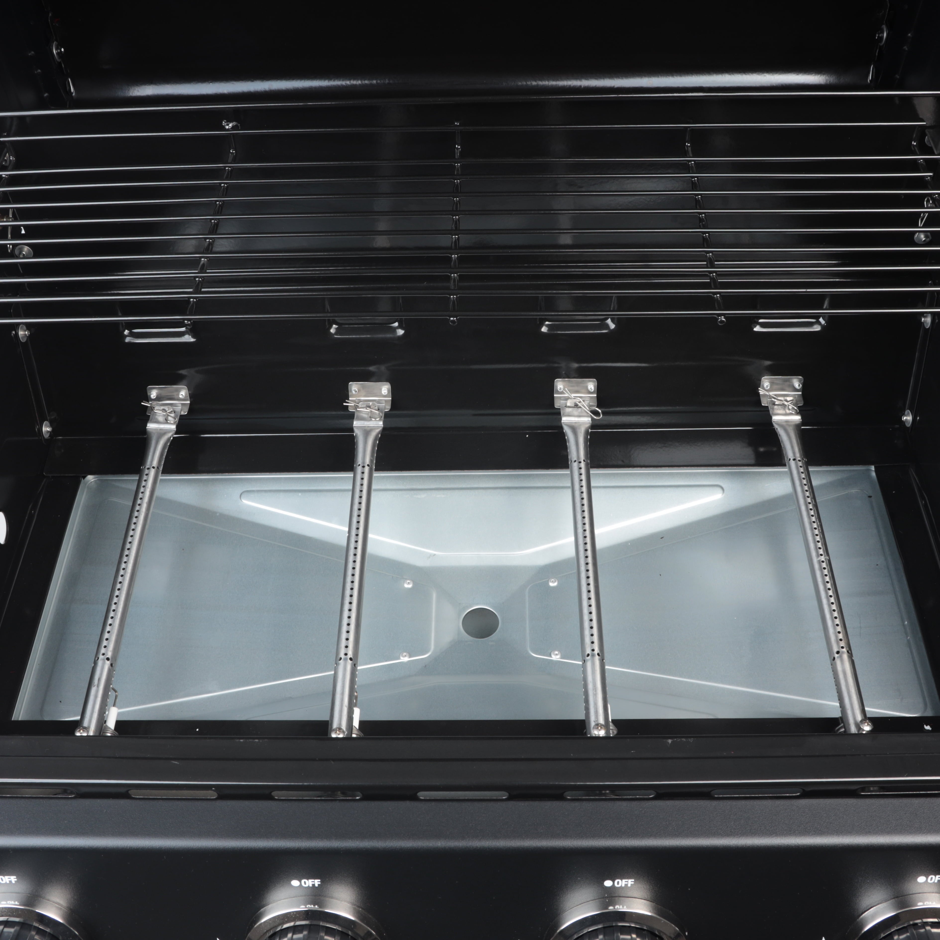 • 4 stainless steel burners providing a total of 48000 BTU
