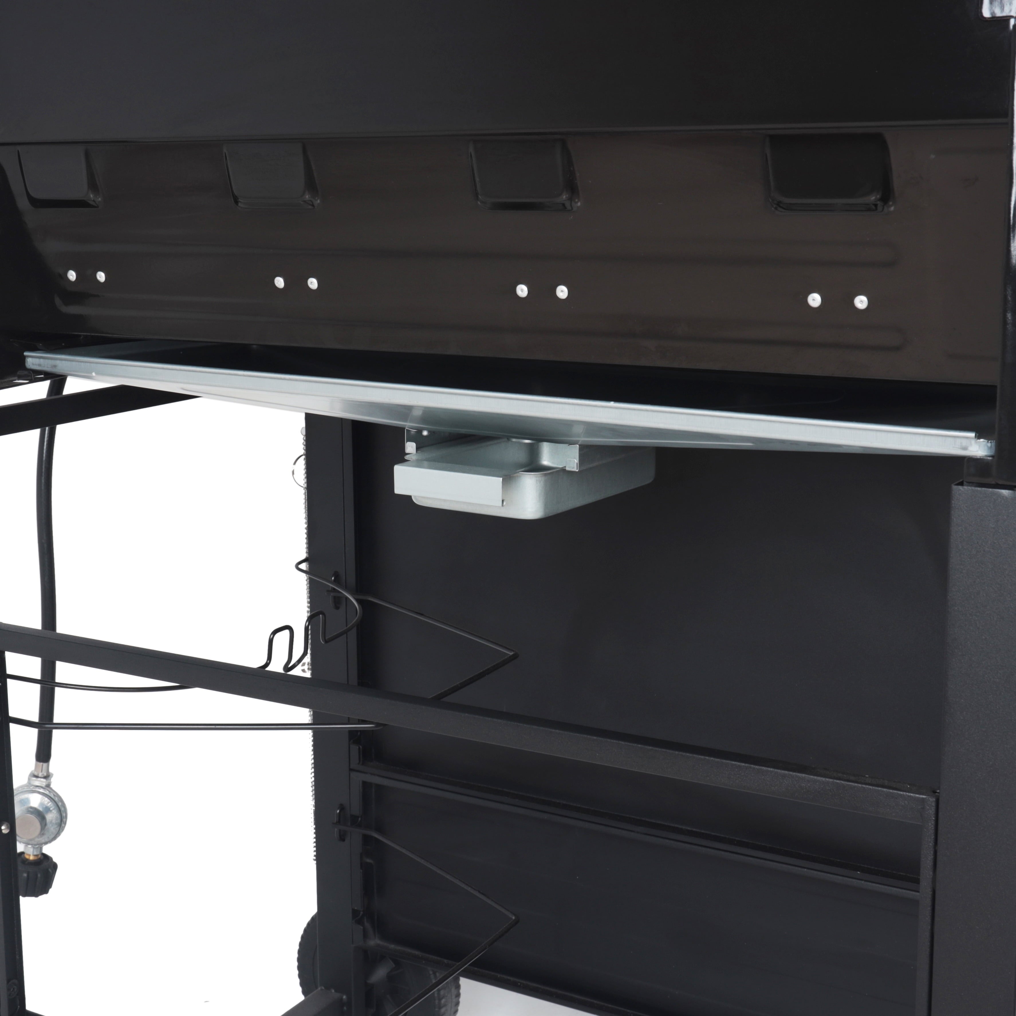 • 4-Burner Propane Gas Grill with Side Burner. Stainless Steel & Black