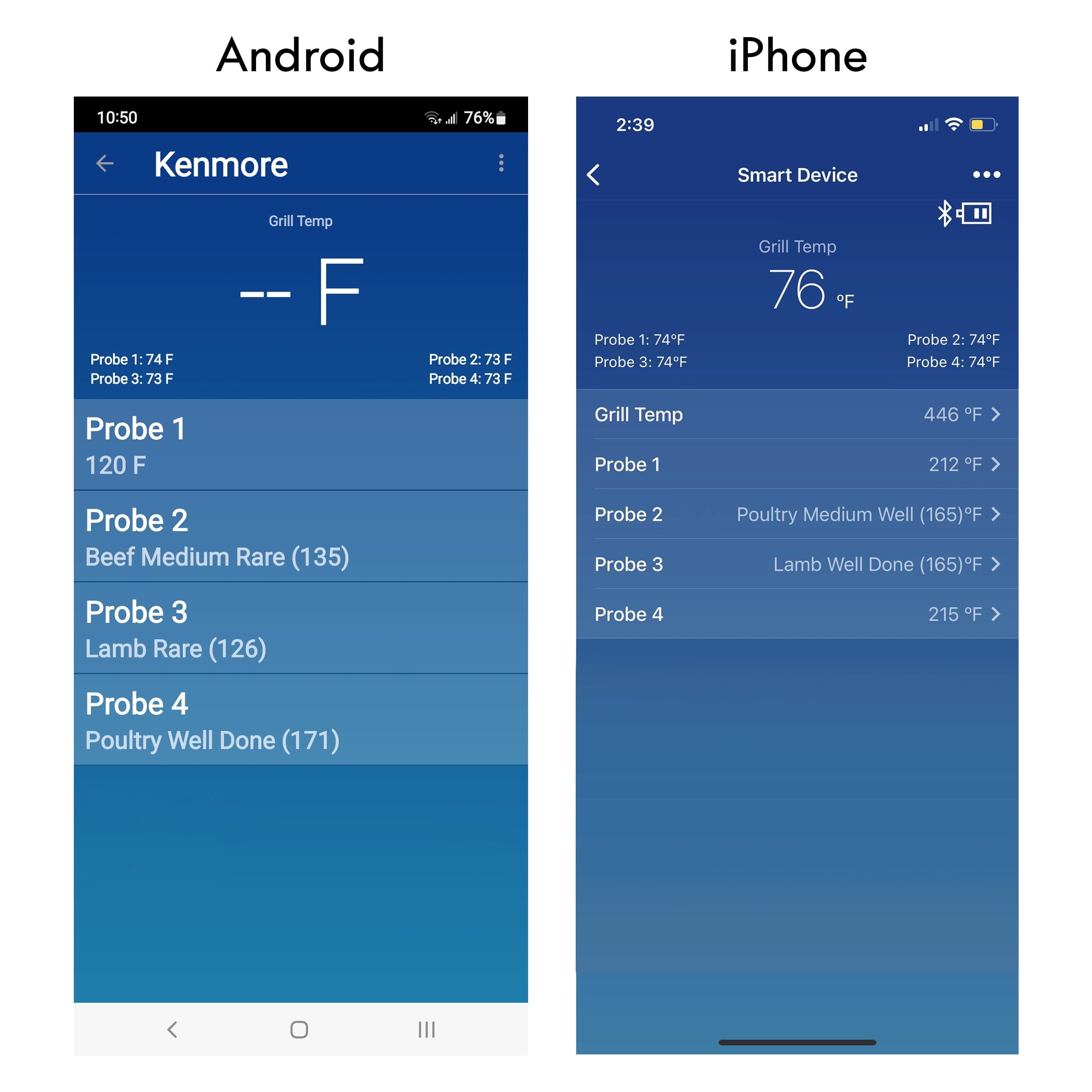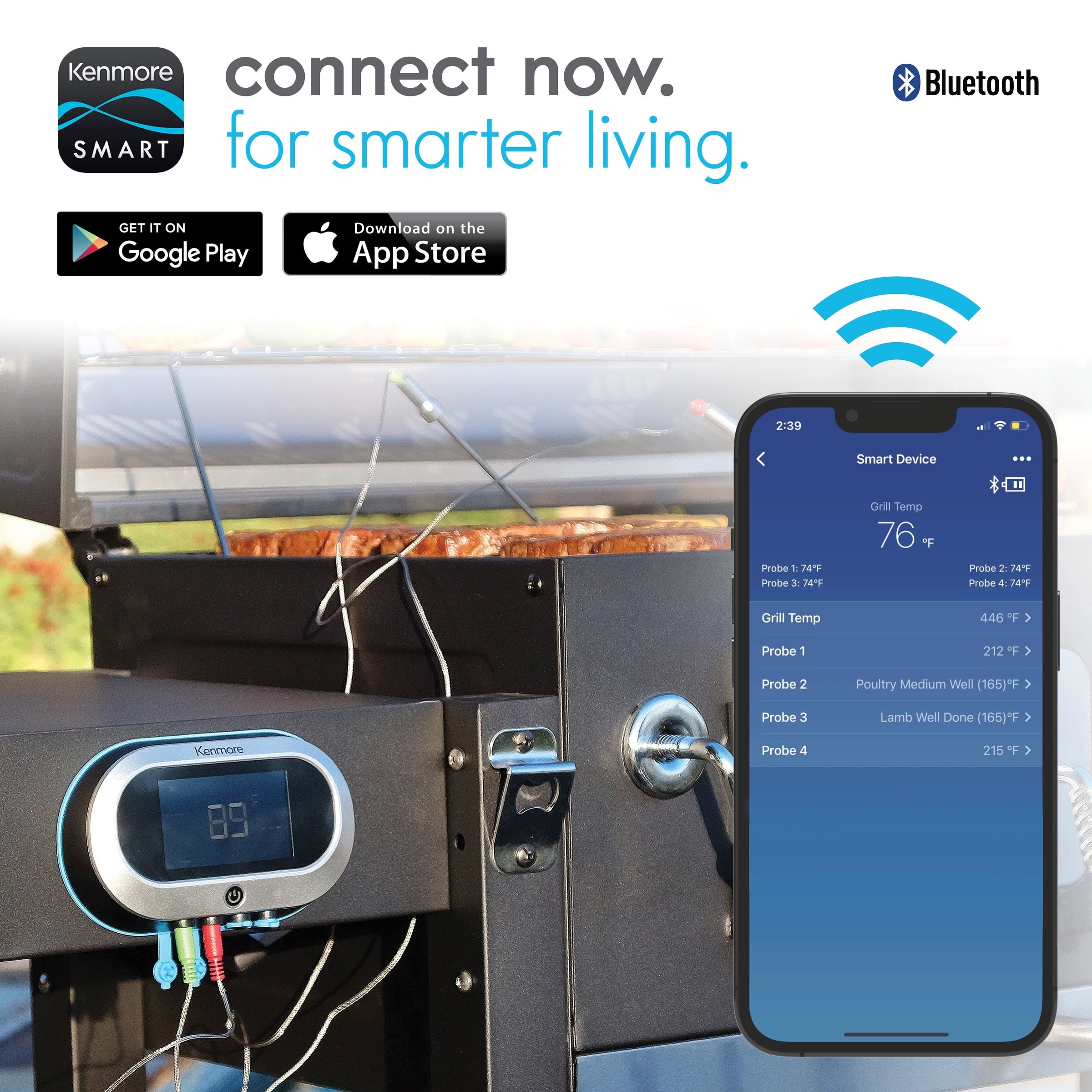 - The Kenmore SMART Bluetooth-connected device is packed with many functions such as 4 meat temperature probes an ambient grill temp gauge and you can monitor the doneness and status from your phone on the Kenmore SMART App (separate smartphone with Bluetooth connectivity required)