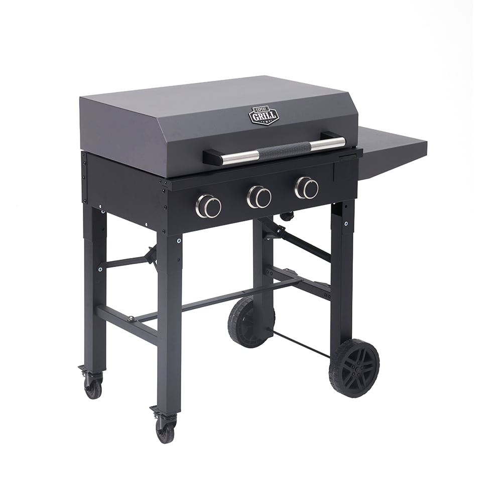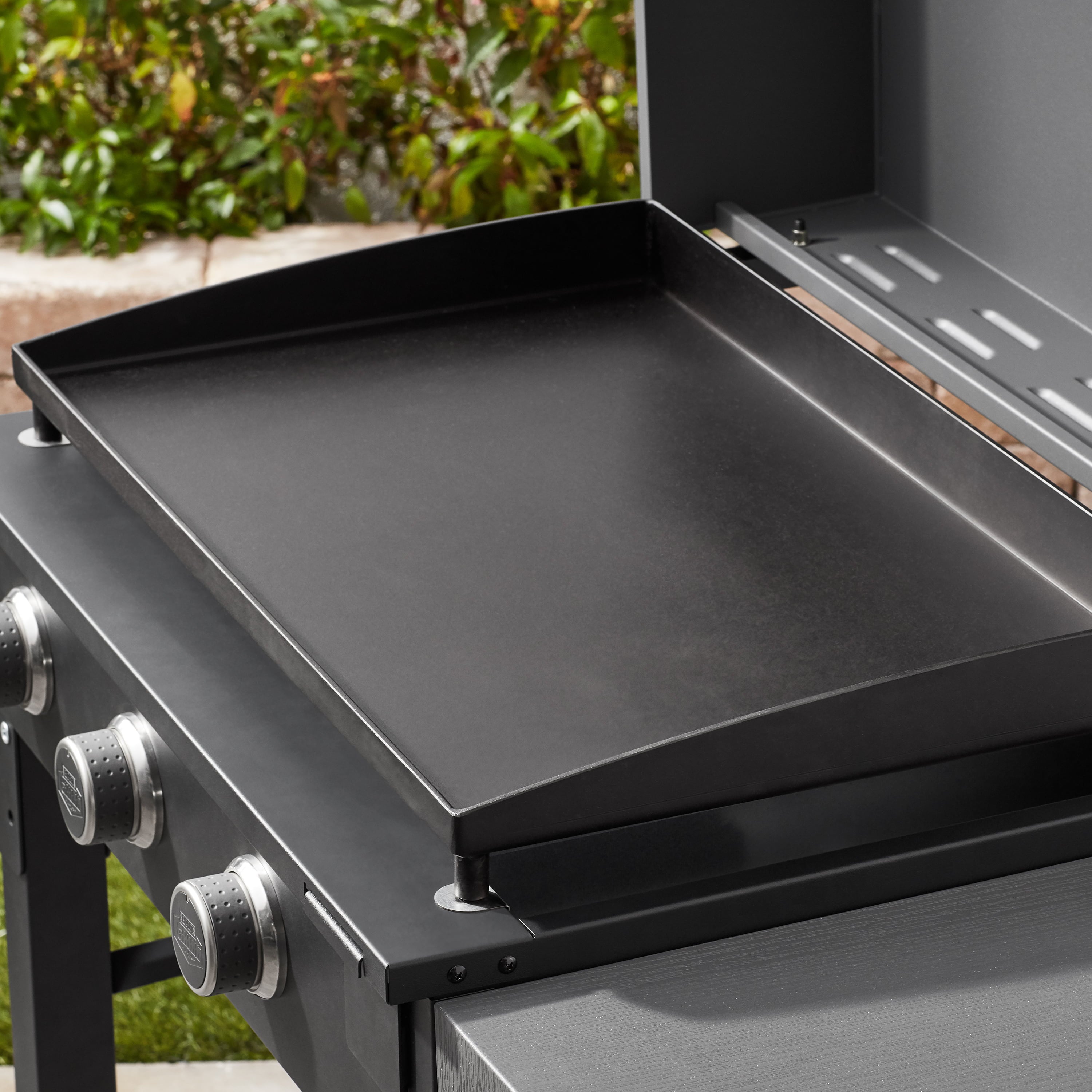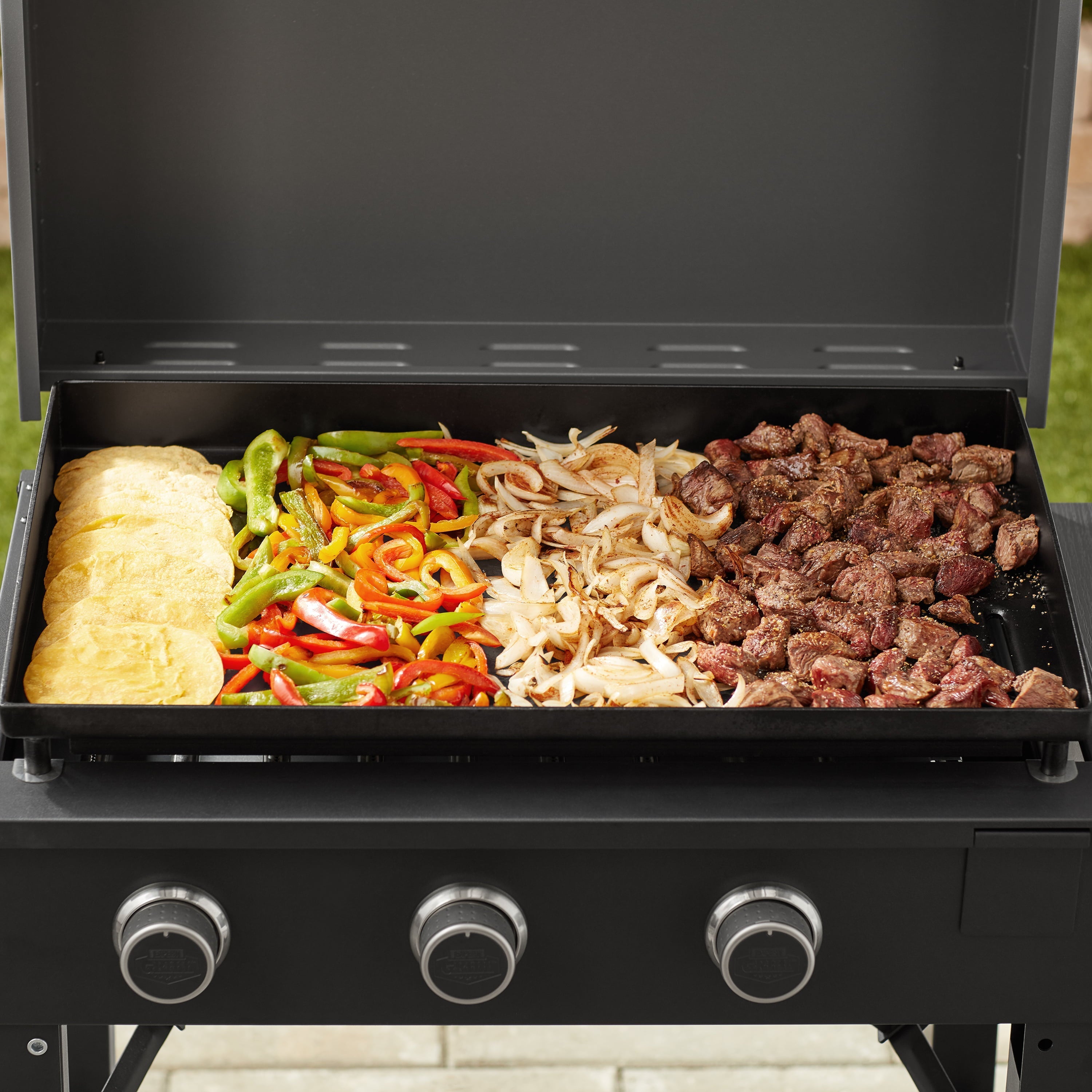 Get ready to be the star at your next backyard barbeque with the Expert Grill Pioneer 28-Inch Portable Gas Griddle. The Walmart exclusive 28-inch griddle features 409 square inches of thick cold-rolled steel griddle surface for excellent heat retention and distribution. This gas griddle offers a versatile cooking system perfect for pancakes steaks hamburgers bratwurst veggies or fried rice- the possibilities are endless. The stainless-steel H-Burner design results in uniform heat across the griddle and the independently controlled stainless steel burners allow you to control the cooking experience and cook multiple items at once. The handy fold-and-go design makes the griddle portable and the thick cold rolled steel and hinged hood helps retain heat. With all this griddle can do you'll want to take it with you on all of your camping hunting boating fishing and tailgating. Whether you're cooking for a large group or a small dinner gathering you'll be a master of cooking a huge variety of foods in minutes with the Expert Grill Pioneer 28-Inch Portable Gas Griddle.