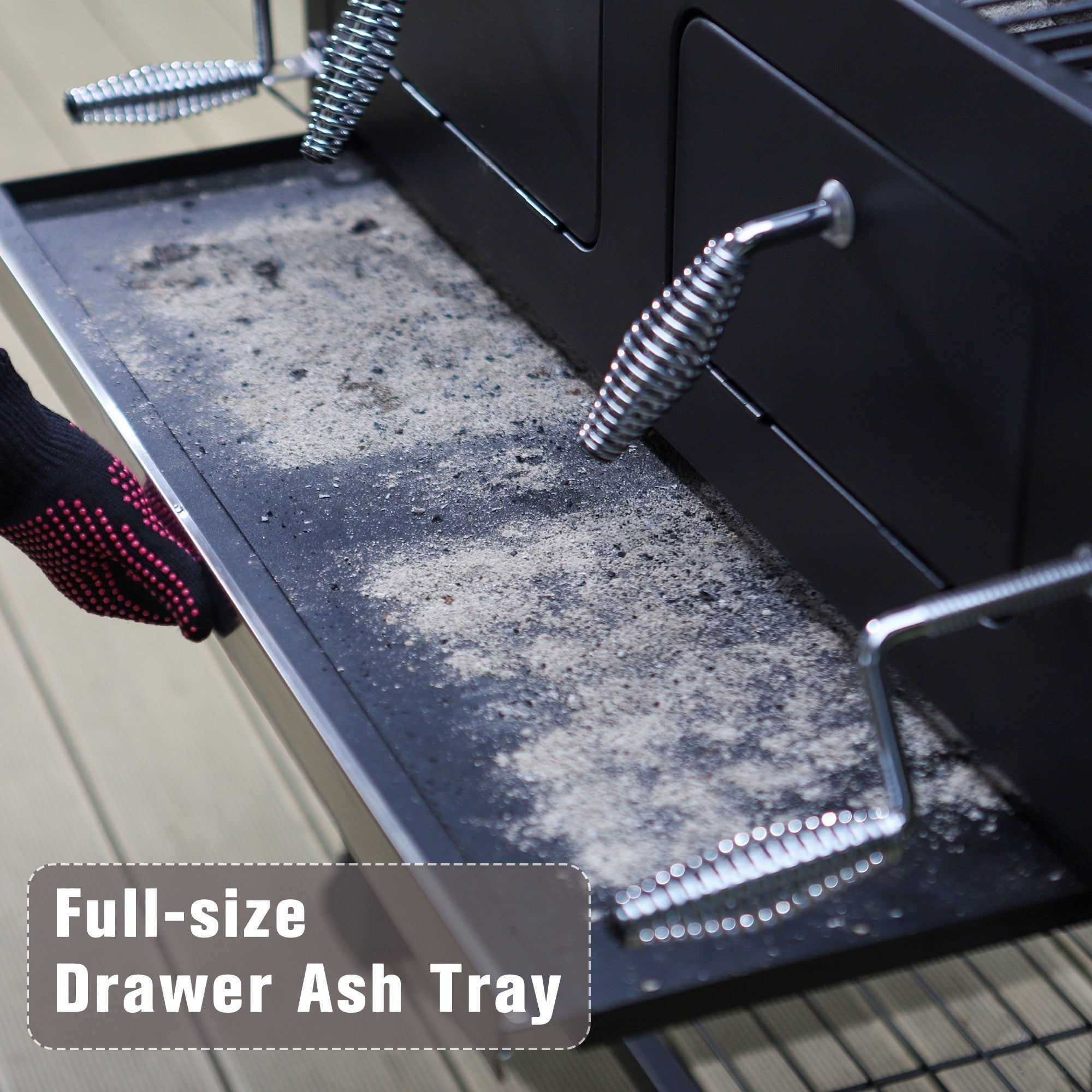 • Height-adjustable charcoal pan with ventilation holes that can fine-tune the temperature during grilling ensures the best performance
