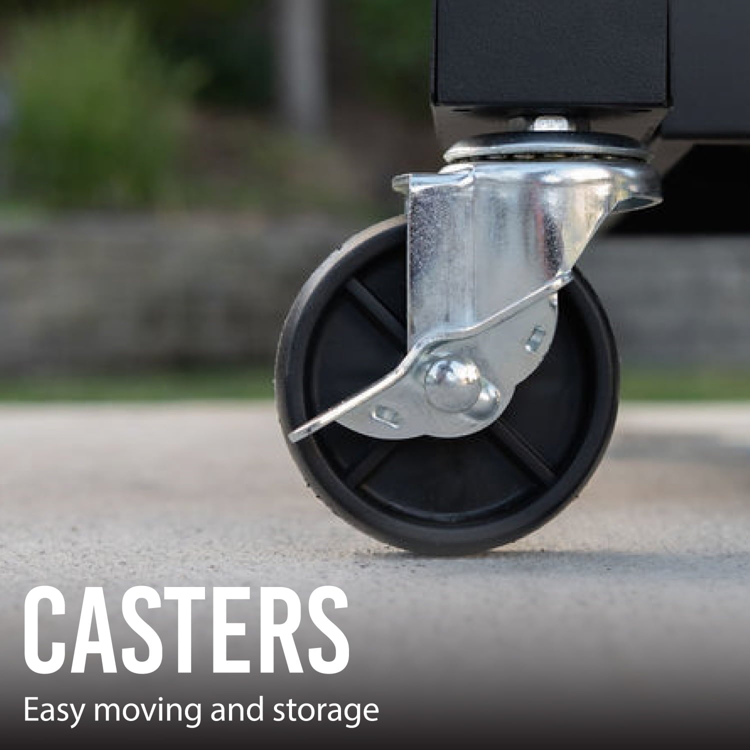 - Double access cabinet doors provide ample storage space for an LP tank grilling tools or any other accessories you may need to keep secure.