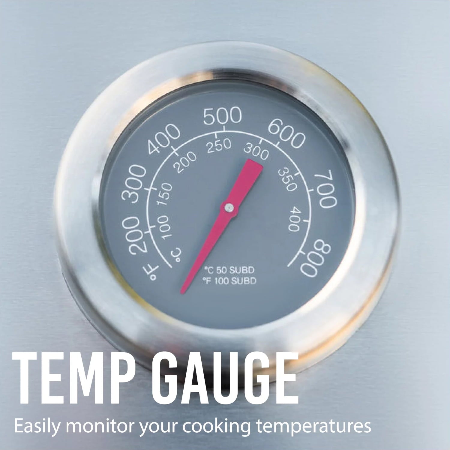- The attached temperature gauge lets you keep track of your grill's internal temperature.