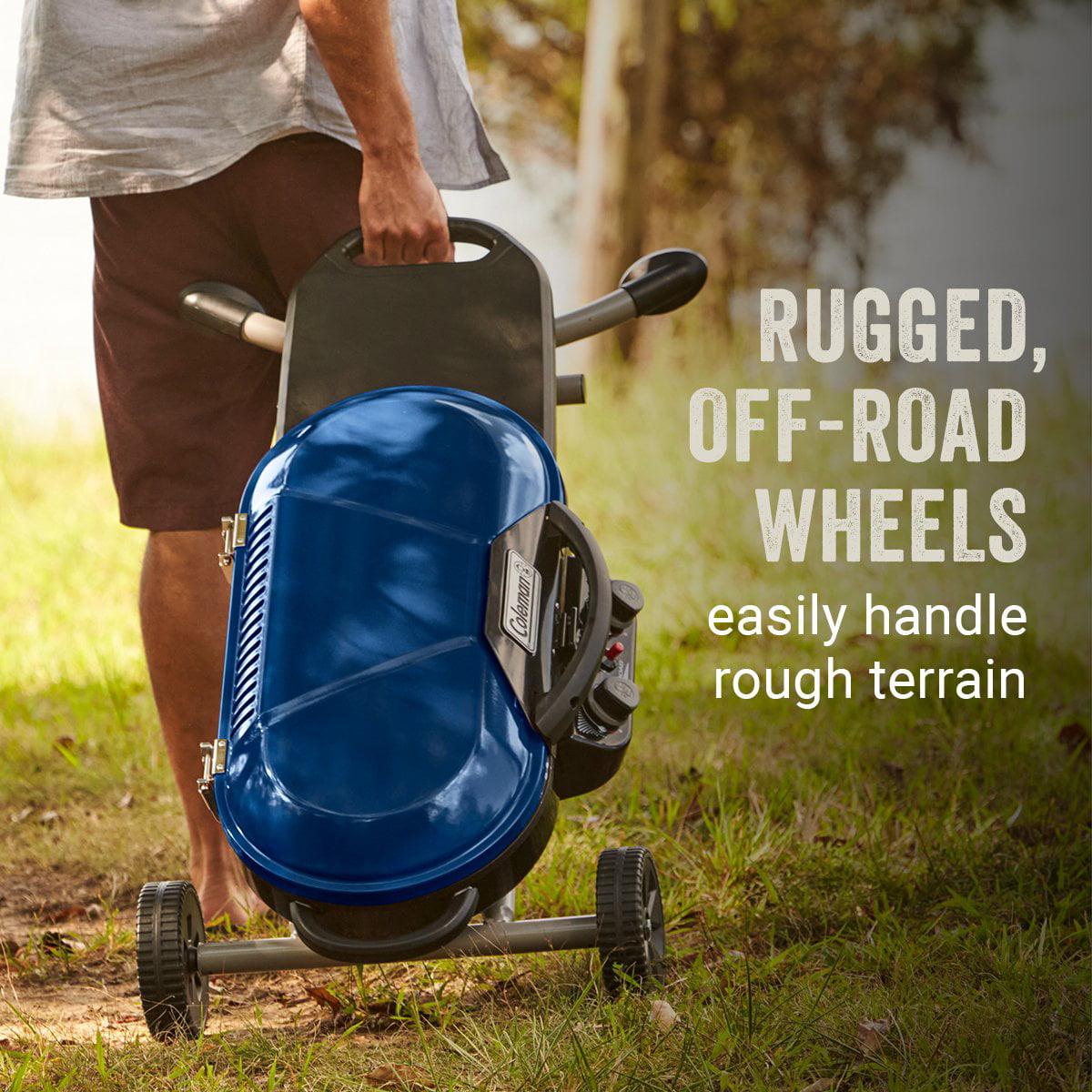 Rule the campground park or the parking lot when you fire up your Coleman® RoadTrip® X-cursion�?Propane Camping Stove. This portable grill with collapsible steel scissor legs and a low-profile design make moving it around as easy as flipping a burger while the rugged off-road wheels handle almost any terrain. Once you're at your grill site 285 sq. in. of porcelain-coated cast iron grills are waiting for anything you can throw at them. Just hit the Instastart�?push-button ignition and dial in your heat with the two independently adjustable burners. Turn up the heat with 20000 BTUs of grilling power that delivers it consistently across the grill surface thanks to the Even-Temp�?burners. If you're looking for more meal options the Swaptop�?interchangeable cooktops let you change out one of the grill grates with a griddle or stove grate (both sold separately). When it's time to head home the DripTrap�?removable water pan catches all the grease for easy cleaning before you go. Fold this grill up and it will store out of the way until you head out to your next summer cookout.