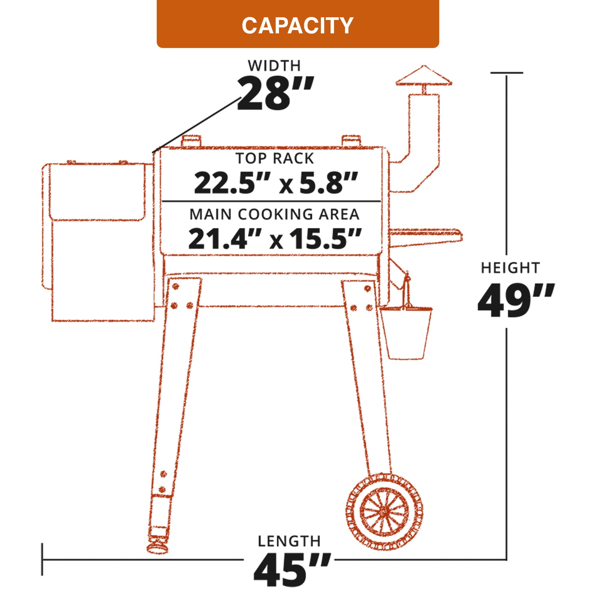 - Huge 459 sq. in. grilling area 20 lbs. hopper capacity foldable working shelf heavy-duty all terrain wheels rust proof cover and racks