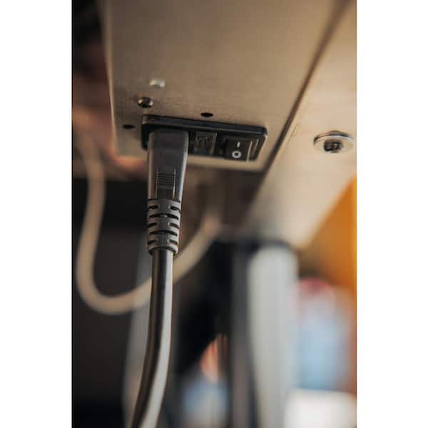 2 ways to power your grill display; you can plug it into an electrical outlet or use an external rechargeable power bank (battery pack) that can be clipped in under the side table; if using a battery pack we recommend purchasing a B-certified 10000mAh power bank