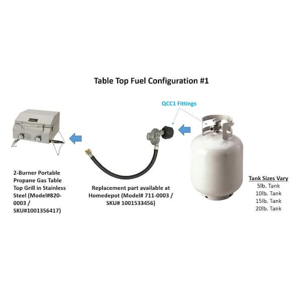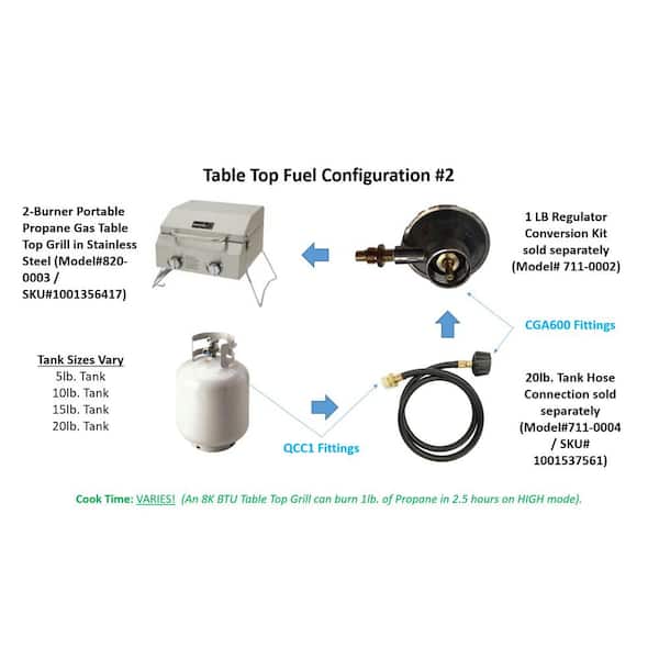The Nexgrill Portable 2-Burner Stainless Steel Tabletop Grill is equipped with two push-and-turn ignition burners for quick and easy start-ups. It offers 16000 total BTUs and reaches high temperatures quickly with each burner independently adjustable. The stainless steel-wrapped grill grate covers 184 sq. in. to accommodate as many as nine hamburgers at once. The unit connects to a 20 lb. LP tank and can be modified to work with 1 lb. propane cylinders. No batteries or external flame required for ignition. Adapters and propane are sold separately.