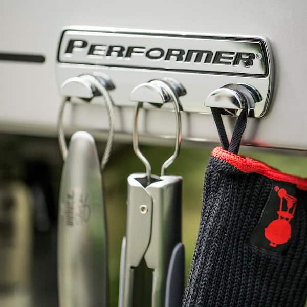 The Weber Performer Delue Charcoal Grill includes 1-touch cleaning system with 3 aluminized steel rust-resistant dampers which regulate airflow while cooking and sweep ash after grilling