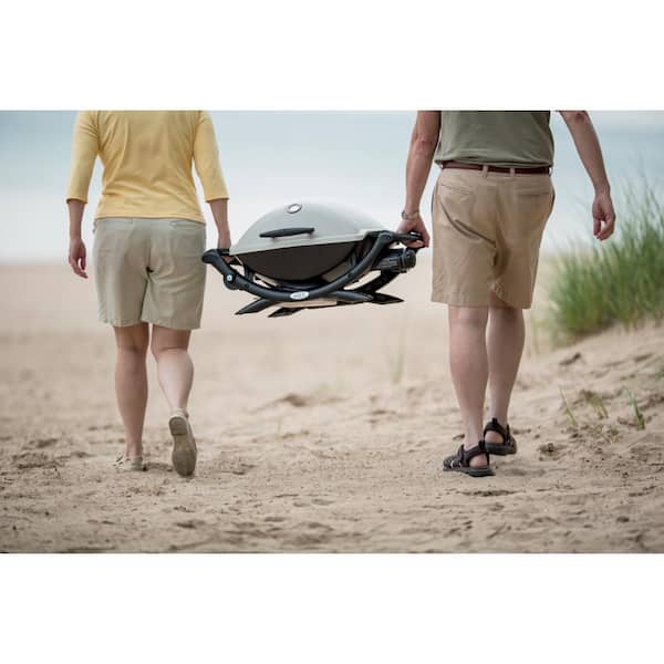 The Weber Q 2200 propane gas BBQ grill features a 2-Piece porcelain-enameled cast iron cooking grate covering 280 sq. in. that will easily sear several hot dogs and hamburger patties at once. This portable powerhouse is constructed with a cast aluminum lid and body augmented with a glass-reinforced nylon frame that will withstand frequent use and transport. The revolutionary Q-shaped stainless-steel burner supplies consistent heat to every corner of the grill capable of 12000 maximum BTUs-variable by way of the side-mounted infinite control valve. Swap out one of the cook grates for a Weber Original Q Griddle (sold separately) to utilize half of the grill for cooking bacon eggs and pancakes.