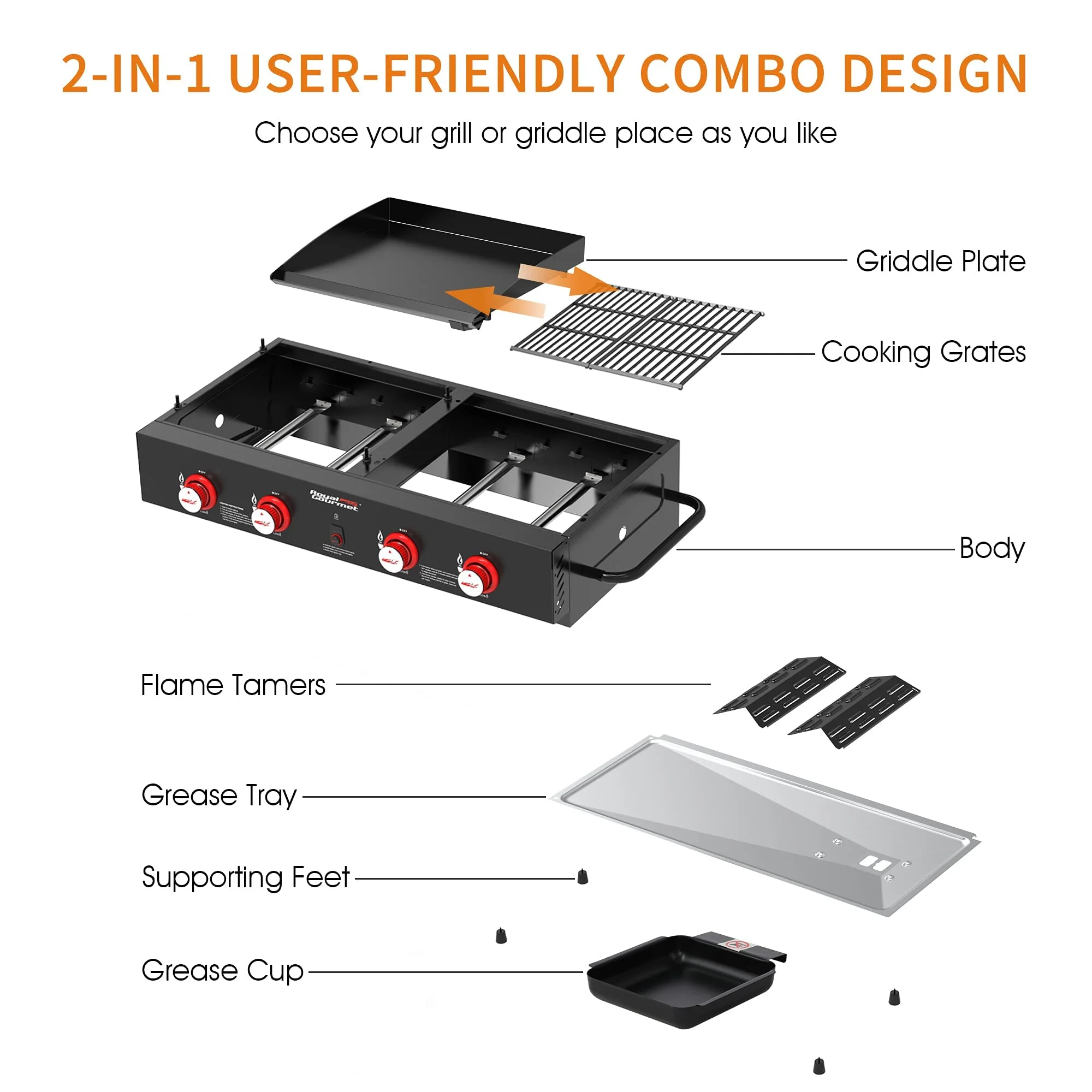 4-Burner GD4002T Portable Gas Grill and Griddle Combo. 40000 BTU