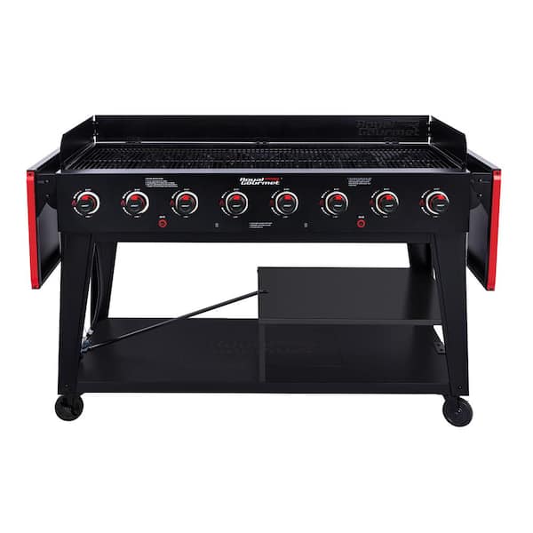 8-Burner Event Propane Gas Grill with 2 Folding Side Tables in Black