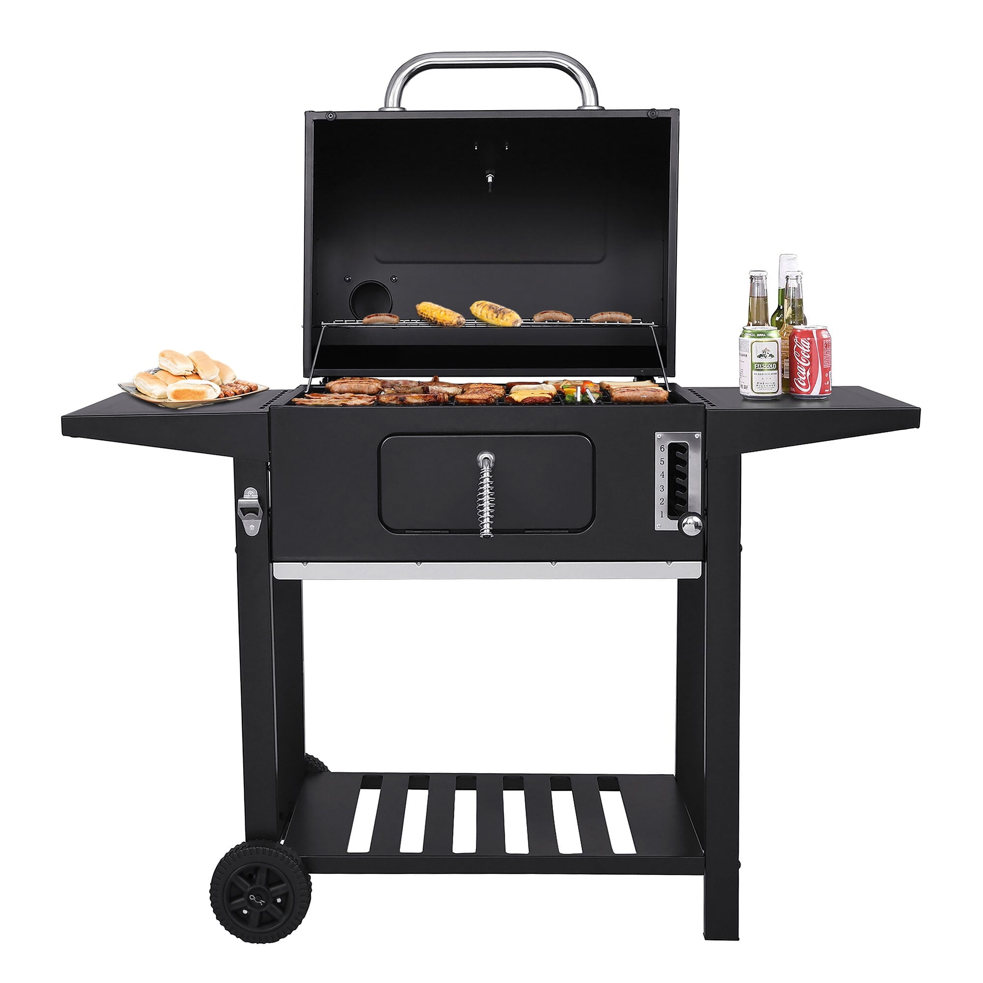 29¡± Barrel Outdoor Charcoal Grill with Side Shelf and Wheels. Black