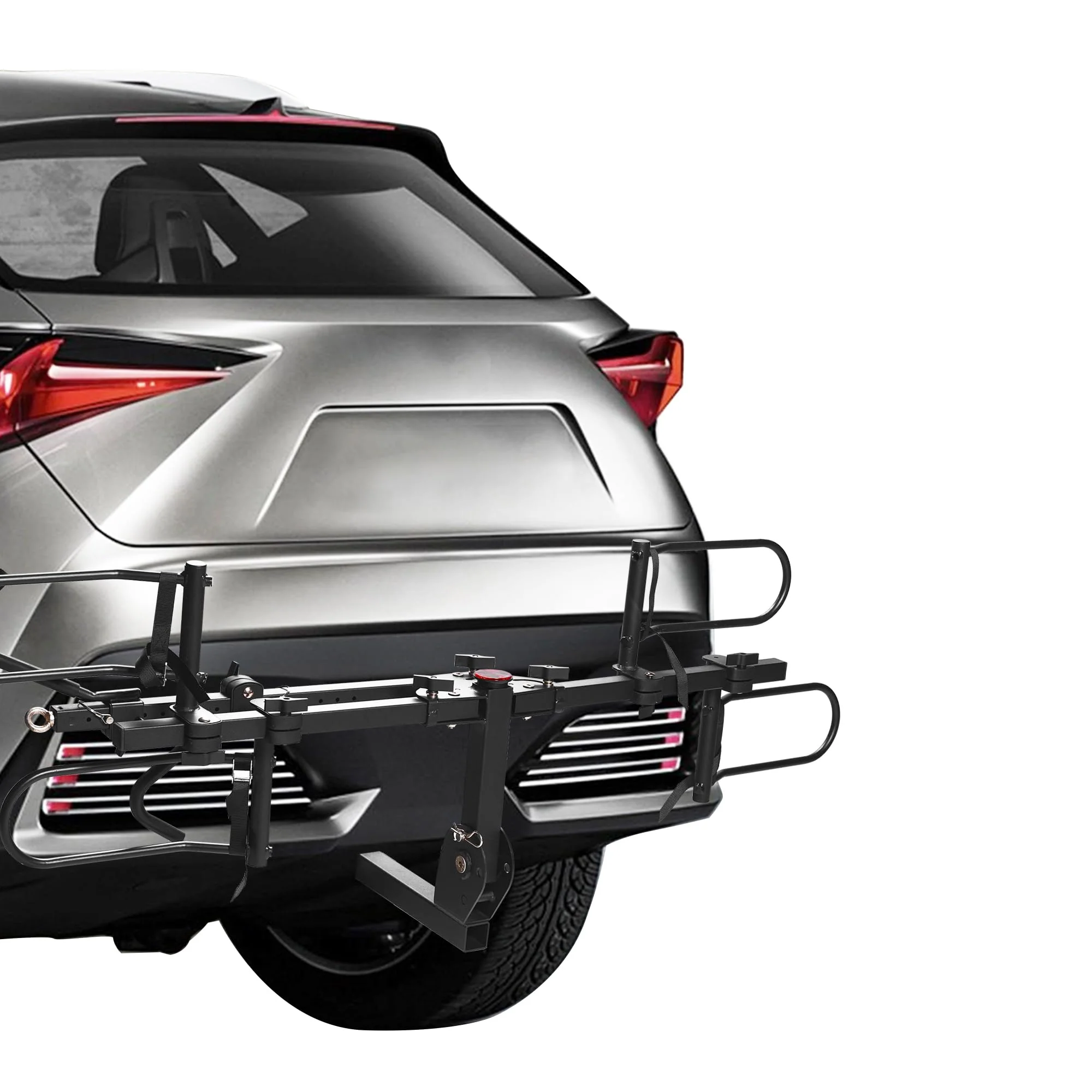 • SAFE AND SECURE: Comes with soft padded hooks. that secure your bikes in place without swaying and scratching the paint. Slide down over the vertical frame with hitch tightener to fit different size bike frame for safe. With rear Safety Reflector to enhance the visibility in the dark.