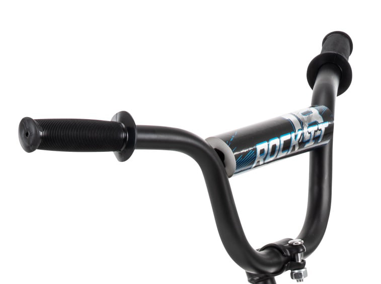 • Handlebars: Hi-rise handlebar in blue with a complementary crossbar pad.