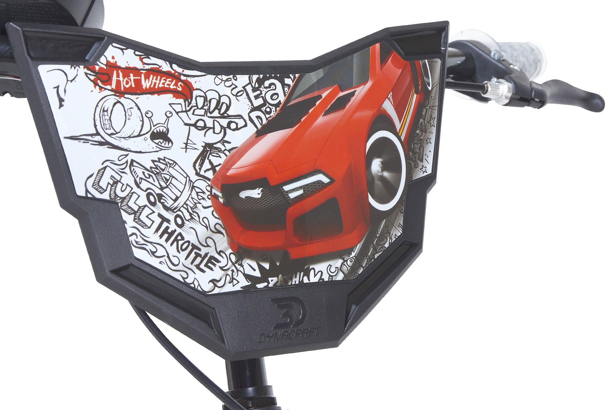 Features:Sturdy steel frame with red crystalline-effect paint finish and authentic Hot Wheels graphics 14 inch wheel size for rider 4-7 years or 37-43\ tall Front caliper brake and rear coaster brake Hot Wheels Rev Grip and racing shield Adjustable and removable training wheels Limited lifetime warranty on frame and fork