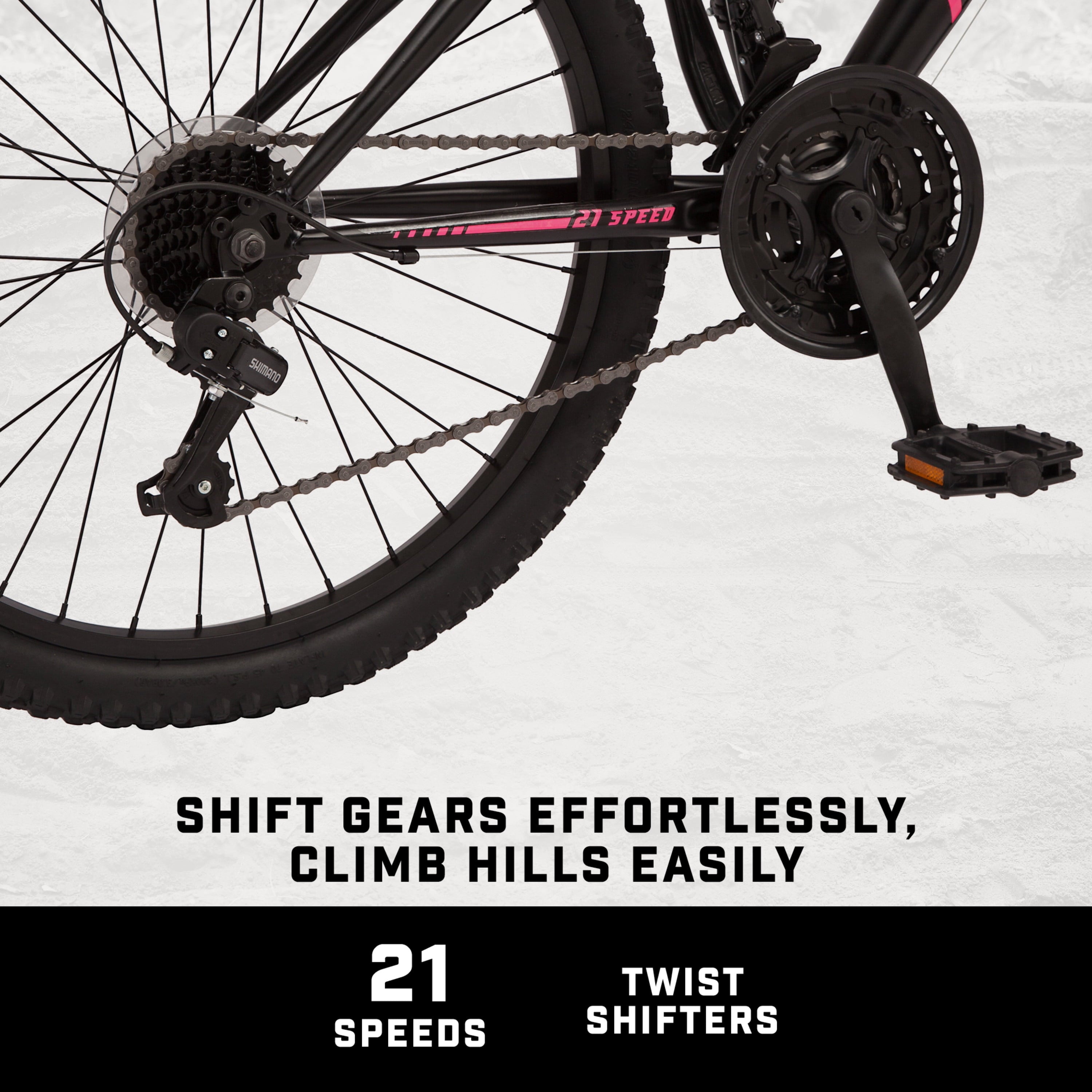 - 21-speed twist shifters offer easy gear changes.