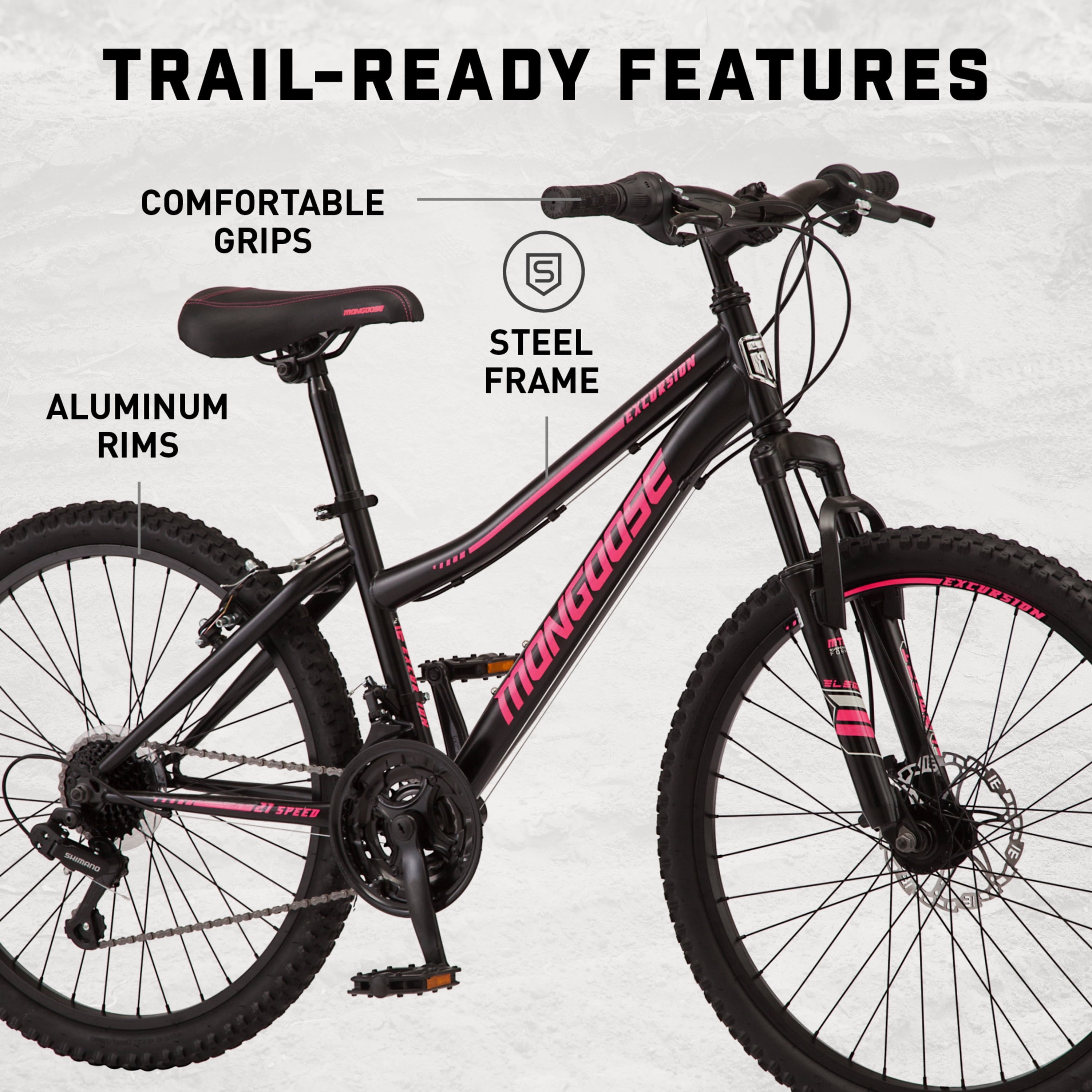 - Durable steel mountain frame that's ready to hit the trail.