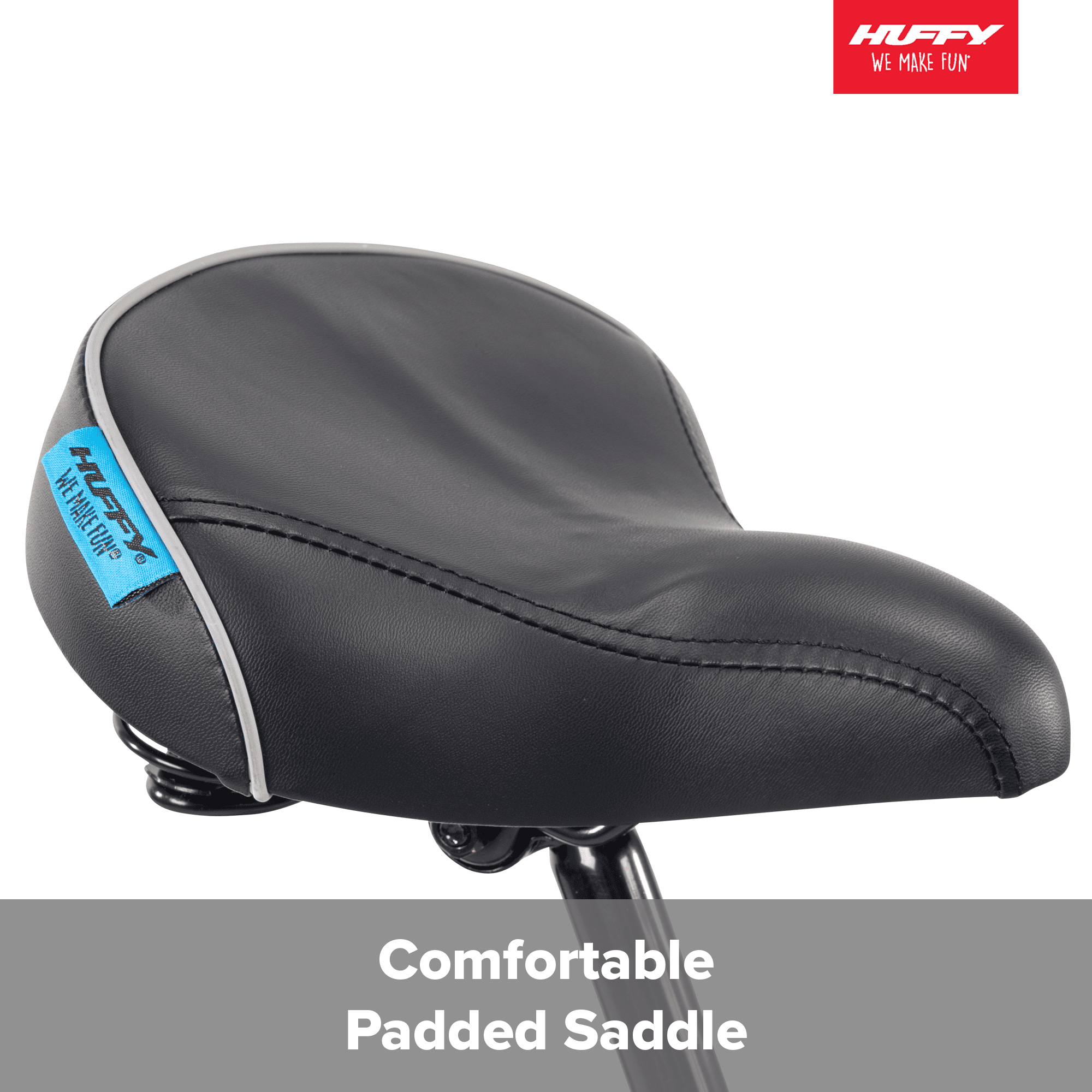• Frame: Matte blue frame with striking black features portray a bold modern style on Huffy's Perfect Fit frame.