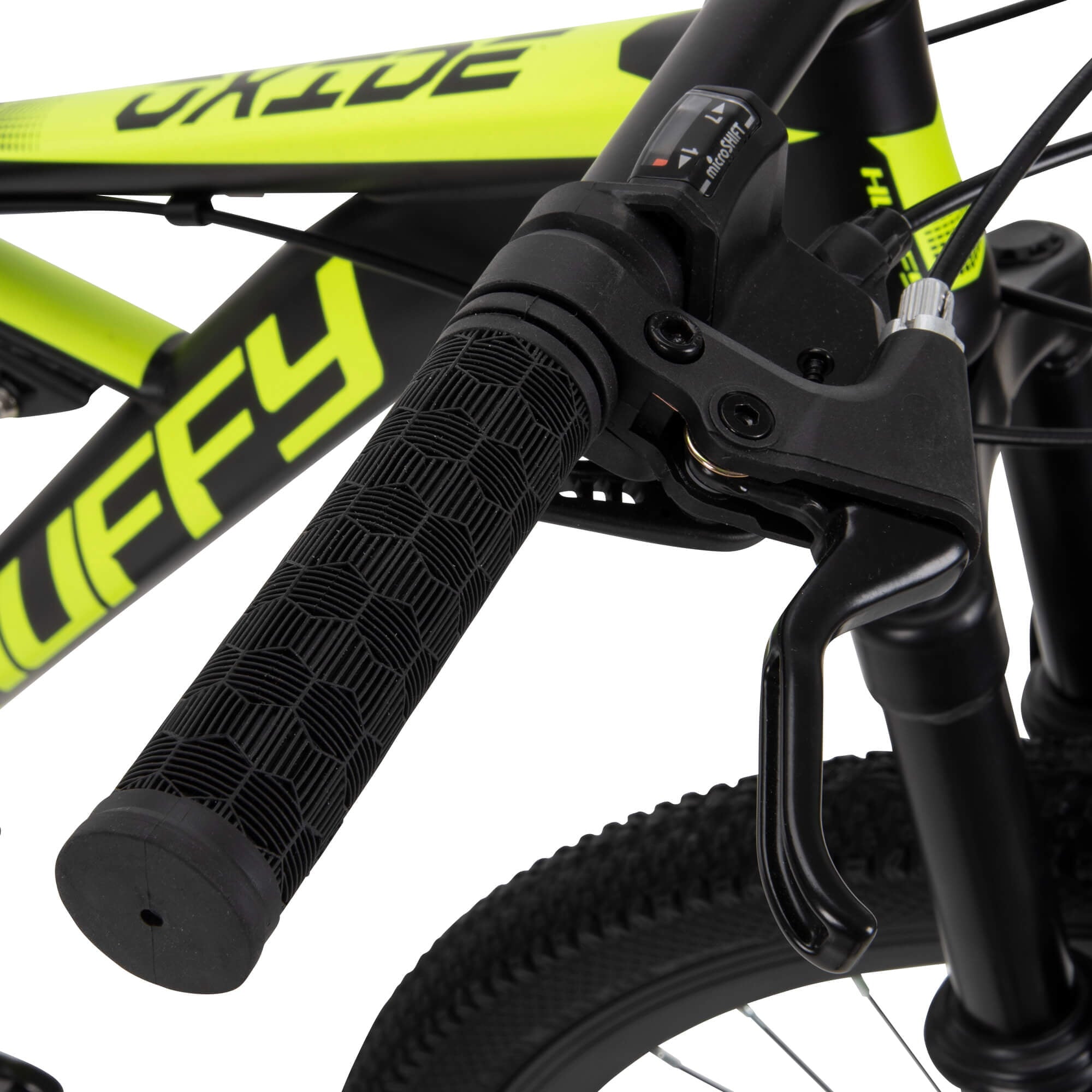 - Grips: Huffy-branded Krayton grips provide a performance style and comfort feel.