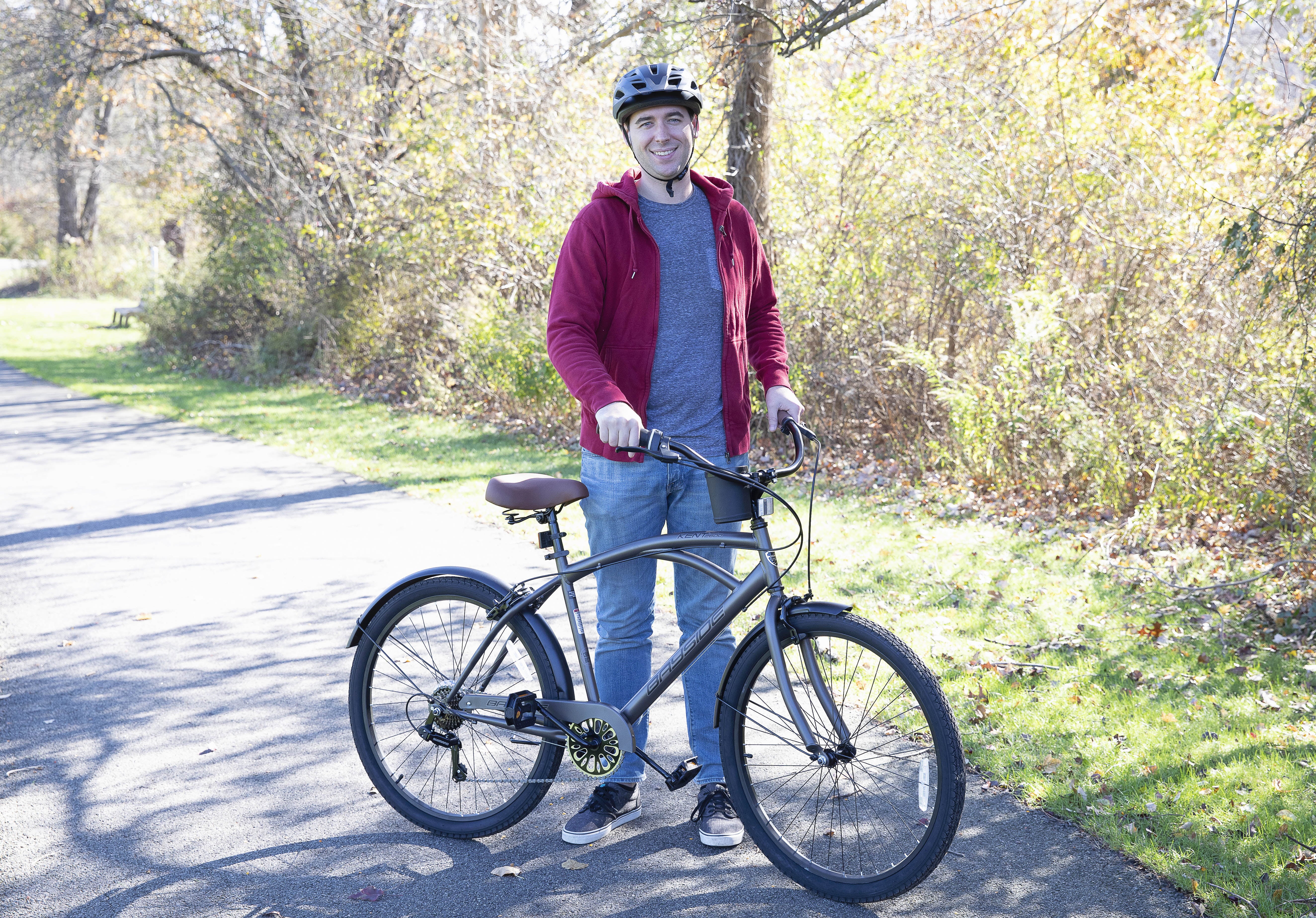 - 7-speed drivetrain with easy twist shifters and Shimano rear derailleur