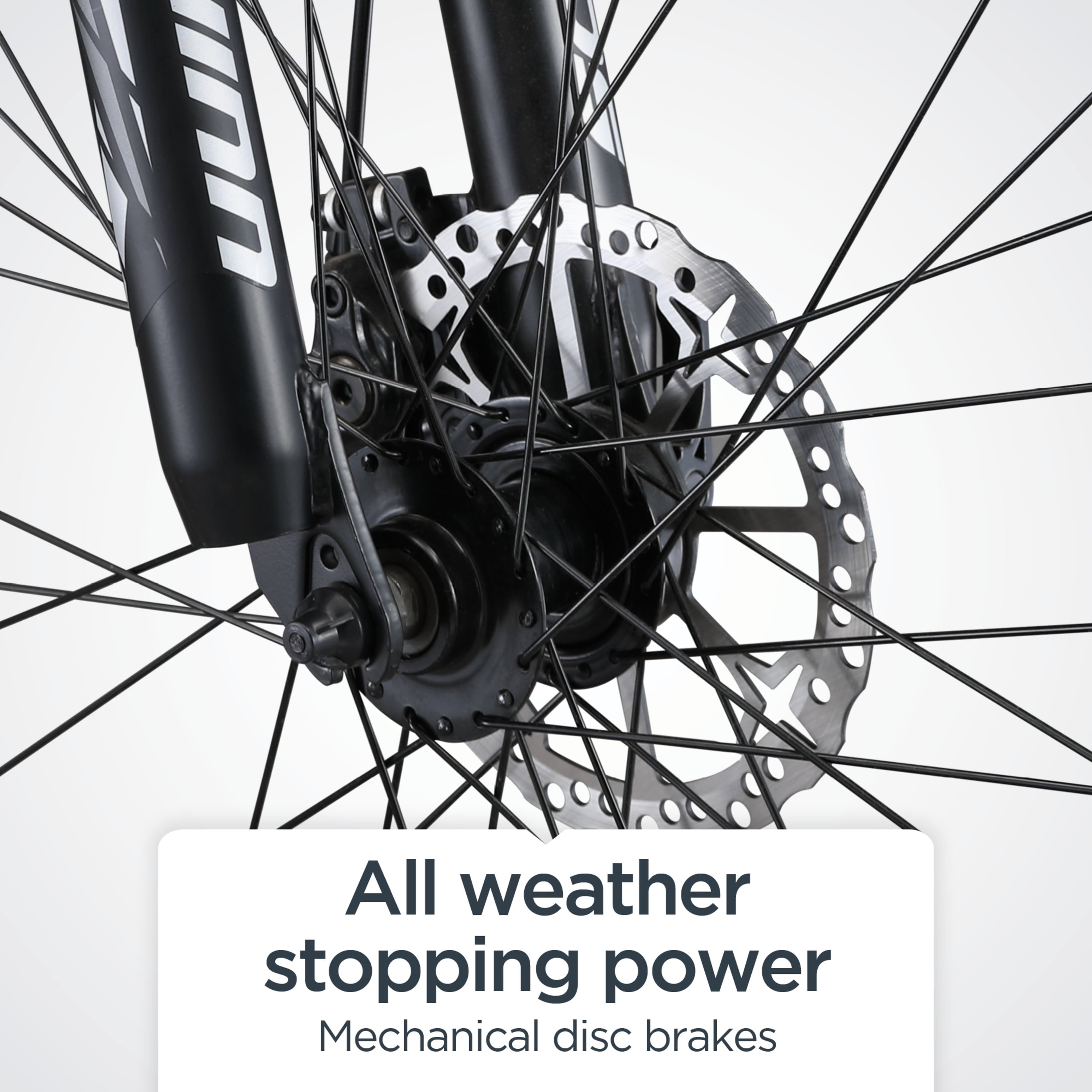 - Front and rear disc brakes provide crisp all-condition stopping and precise speed control.